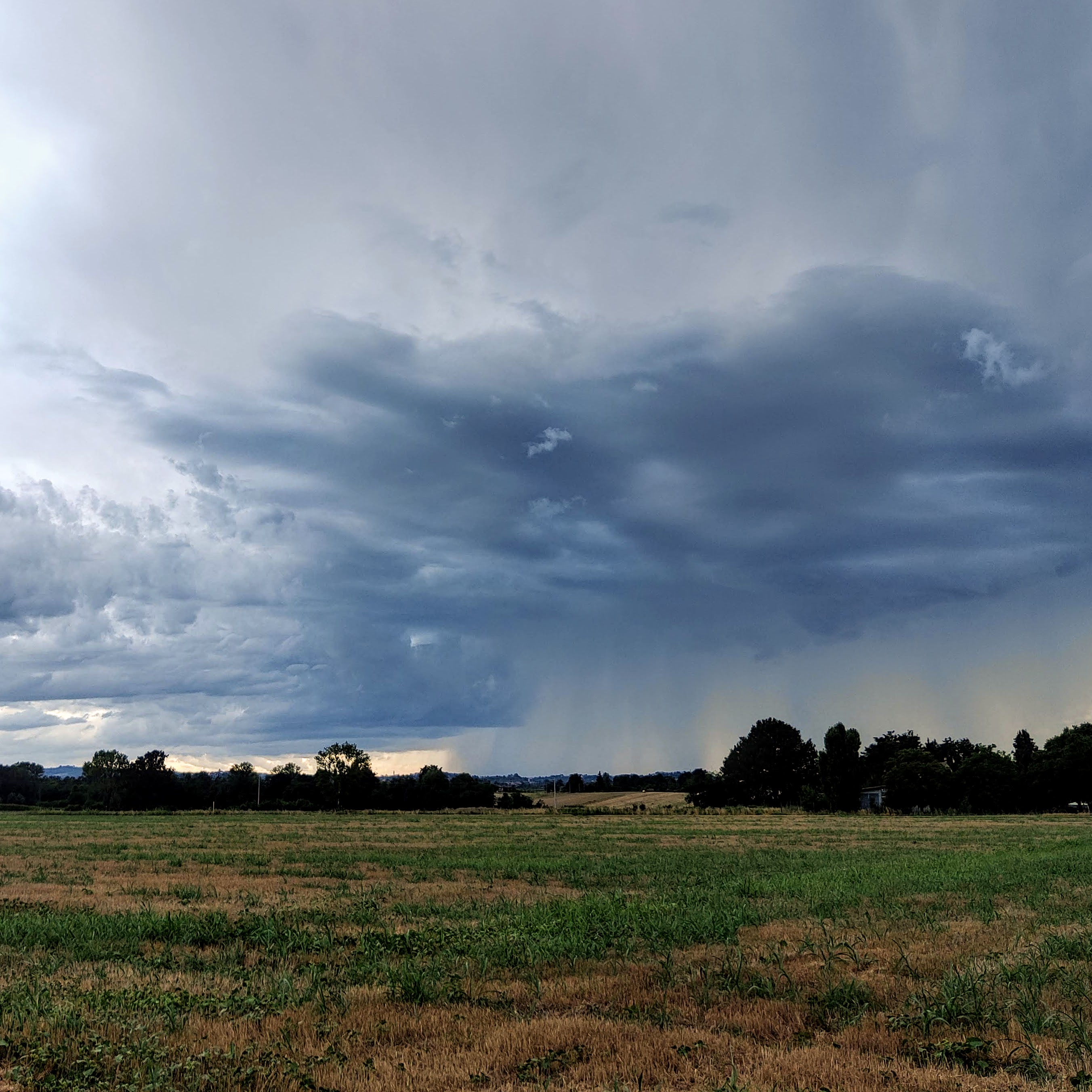 Il fiume d'aria che viaggia da ovest verso est levigando le saccature e i promontori anticiclonici non dura molto, e, come un fiume che incontrando una pianura rallenta, si creano dei meandri che si traducono in scambi meridiani di masse d'aria. L'alta pressione delle Azzorre si distende verso nord e sul suo bordo orientale si instaura un flusso di correnti fredde che dal nord Atlantico raggiungono l'Italia. Il calo termico, piuttosto lento e non così corposo, non è preceduto da una passata di piogge organizzata, tuttavia risulta quanto basta per portare le temperature in maniera decisa sotto i 30 gradi. Il 27 invece arriva la definitiva "rottura stagionale" (che non è ancora la scuola), cioè avviene quella manovra atmosferica in grado di porre fine con decisione al caldo estivo. L'ulteriore avanzata verso nord dell'anticiclone azzorriano provoca, in risposta, la discesa verso sud di una vasta area di bassa pressione ricolma di aria artica (quindi più fredda di quella atlantica), che si distacca dalla circolazione generale (cut-off) e si isola in posizione semi-stazionaria con il suo centro appena a nord-est delle Alpi. Ci troviamo nel bel mezzo di un flusso vivace d'aria da nord che mantiene le temperature ben al di sotto della media e una ventilazione a tratti forte. La mattina del 27, giorno dell'irruzione fresca, trascorre sotto un profilo autunnale, con cielo coperto e tempo uggioso, vento freddino ma ancora senza pioggia! La massima di quel giorno si ferma a +23 gradi, e nei giorni a seguire anche le minime percepiscono il calo grazie a cieli sereni e ad una ritrovata calma di vento, e il 29 si scende a +10,8. Il 30 agosto un temporale porta la prima grandine del 2021 (poca e di piccole dimensioni, con rain rate di 109 mm/h) ma anche l'unico accumulo pluviometrico degno di nota in questo ennesimo mese secco.