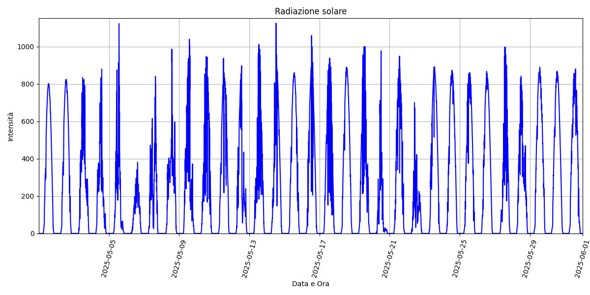 La radiazione solare si mostra in ulteriore crescita, 12,94 ore medie giornaliere.