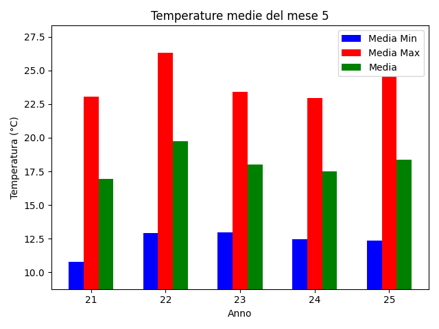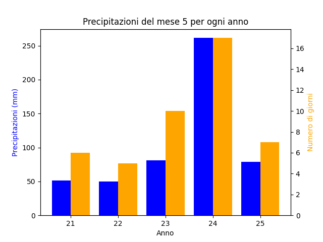 Il salto delle fasi calde durante la parte centrale del mese ha avuto un impatto significativo sulle temperature medie: ancora una volta, maggio si conferma in controtendenza rispetto agli altri mesi dell'anno, tutti votati ad un più o meno corposo riscaldamento. Pur risultando il secondo più caldo dal 2021, maggio 2025 si chiude con un'anomalia di soli +0,76°C sulla media climatologica 1986-2015. Si tratta di una temperatura mensile di +18,36°C, circa un grado e mezzo sotto al caldo 2022. Si contano ben 3 giornate con più di 30°C, una minima assoluta di +9,0°C (8 maggio) e una massima di +30,7°C (29 maggio).