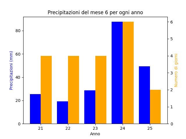 Le precipitazioni, cadute quasi tutte durante un solo temporale della durata di 90 minuti, ammontano a 49,3 mm. Le giornate di pioggia sono 2.