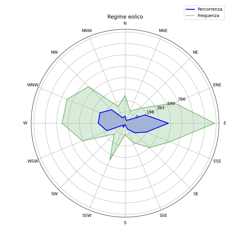 La ventilazione mostra, come in settembre, i primi segni dell'avanzamento stagionale, con una sensibile ripresa del regime di valle (specialmente quello a carattere più locale notturno da SSW e quello mattutino di origine più padana da NW), mentre scompaiono le direzioni fra N e NE, tipiche dell'estate. Resta importante la direzione principale del nostro clima, quella da E, anche grazie al richiamo prefrontale delle perturbazioni atlentiche di fine mese.
