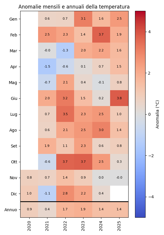 Una panoramica sulla distribuzione delle anomalie termiche nell'arco dell'anno