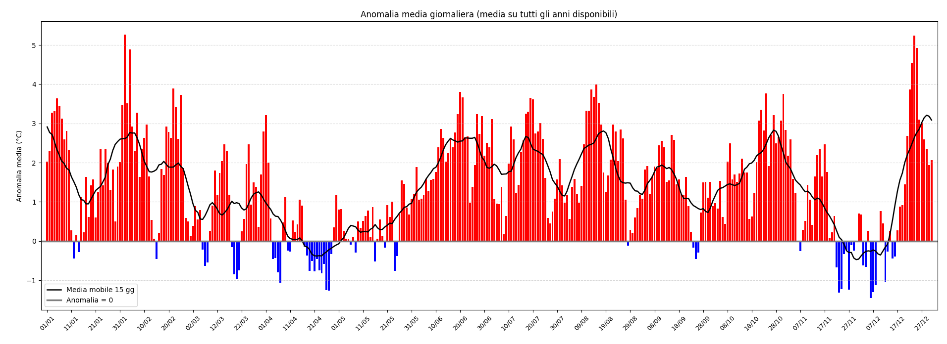 Anomalie medie giornaliere dal 2020 rispetto al 1986-2015