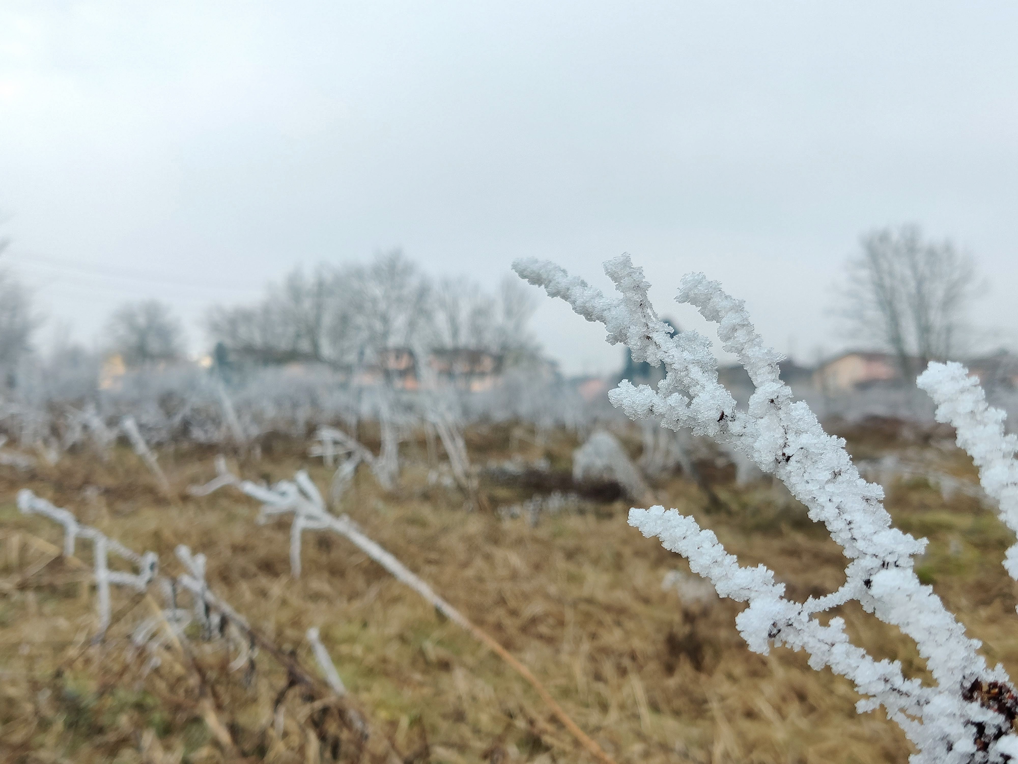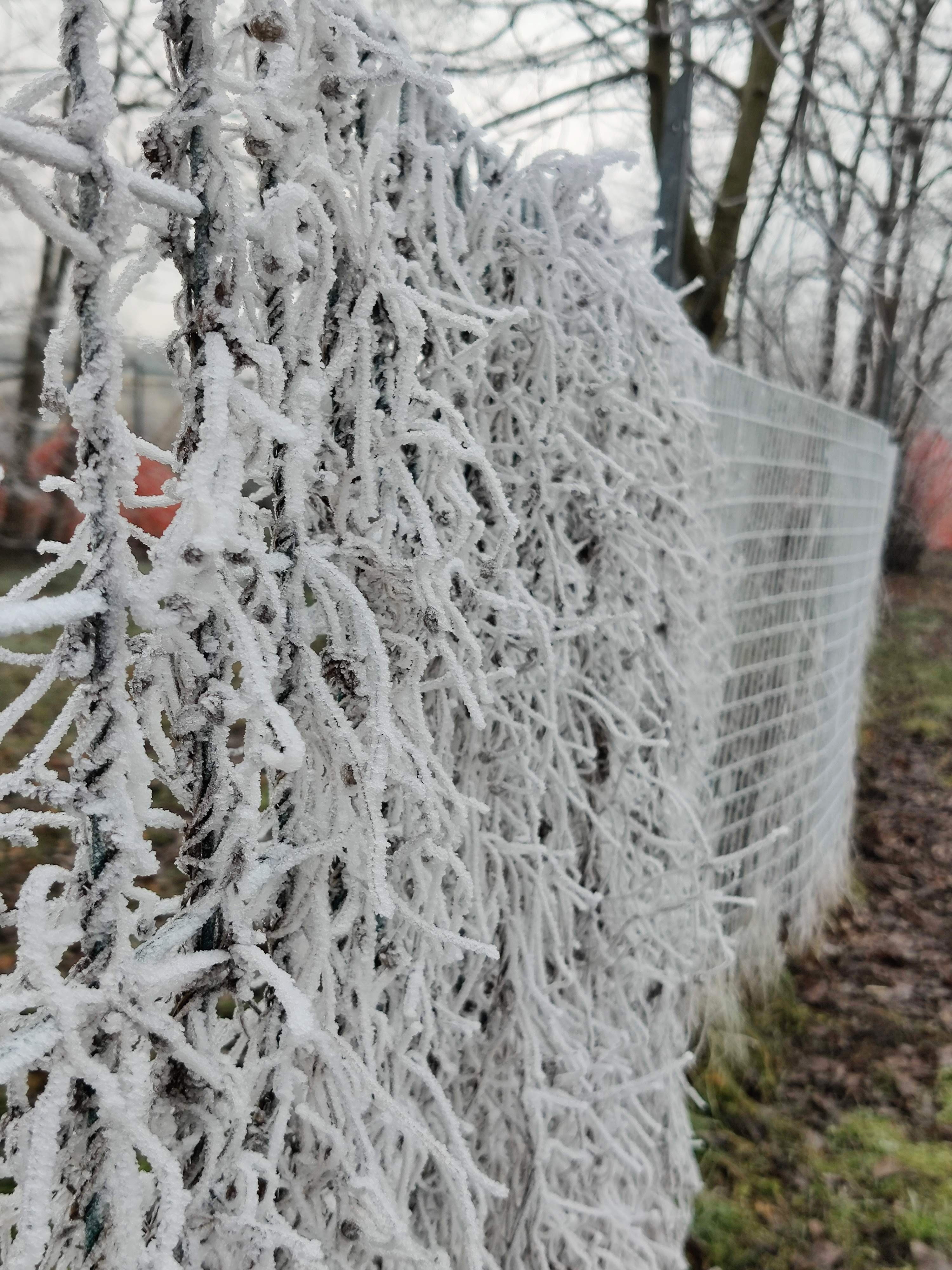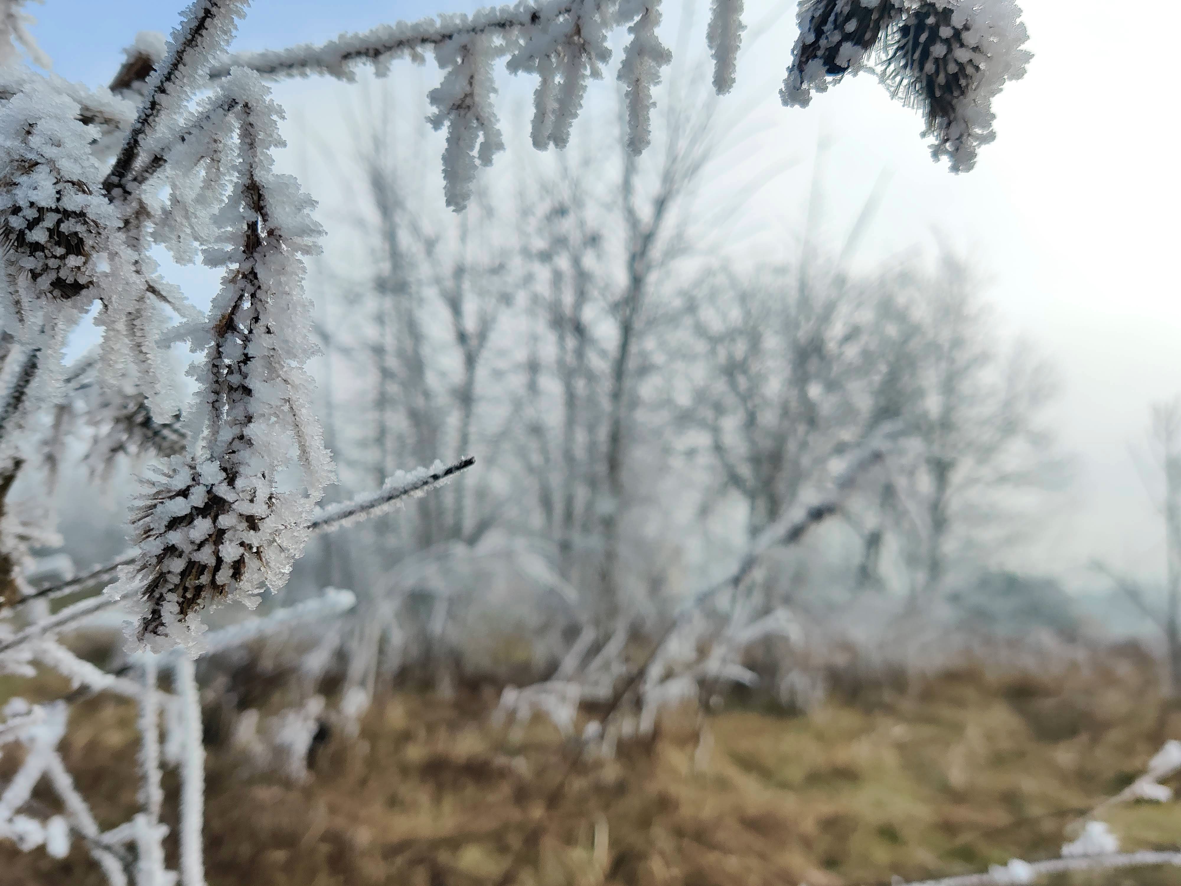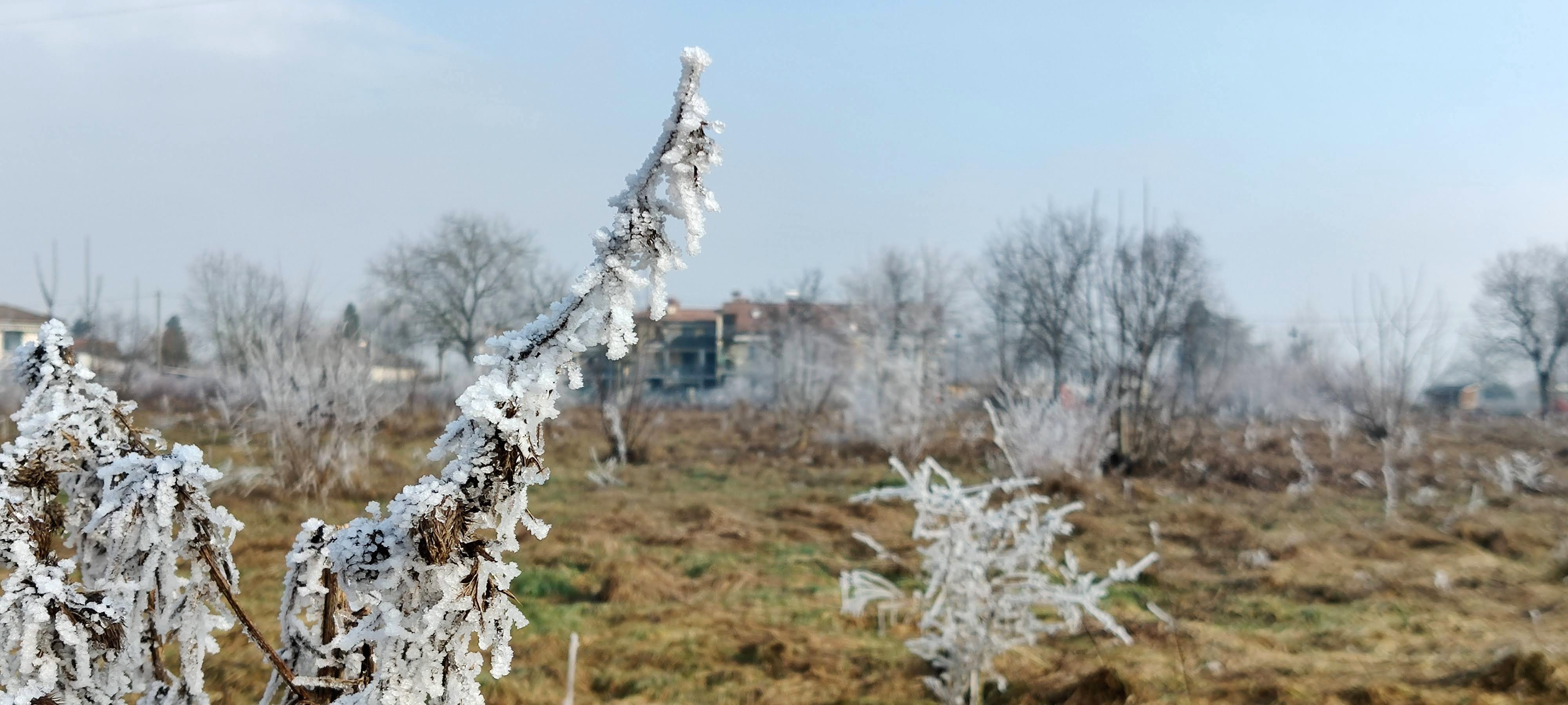Dopo una giornata di ghiaccio garantita da un fitto e persistente nebbione, l'indomani un pallido sole indora un paesaggio reso fiabesco dalla galaverna.