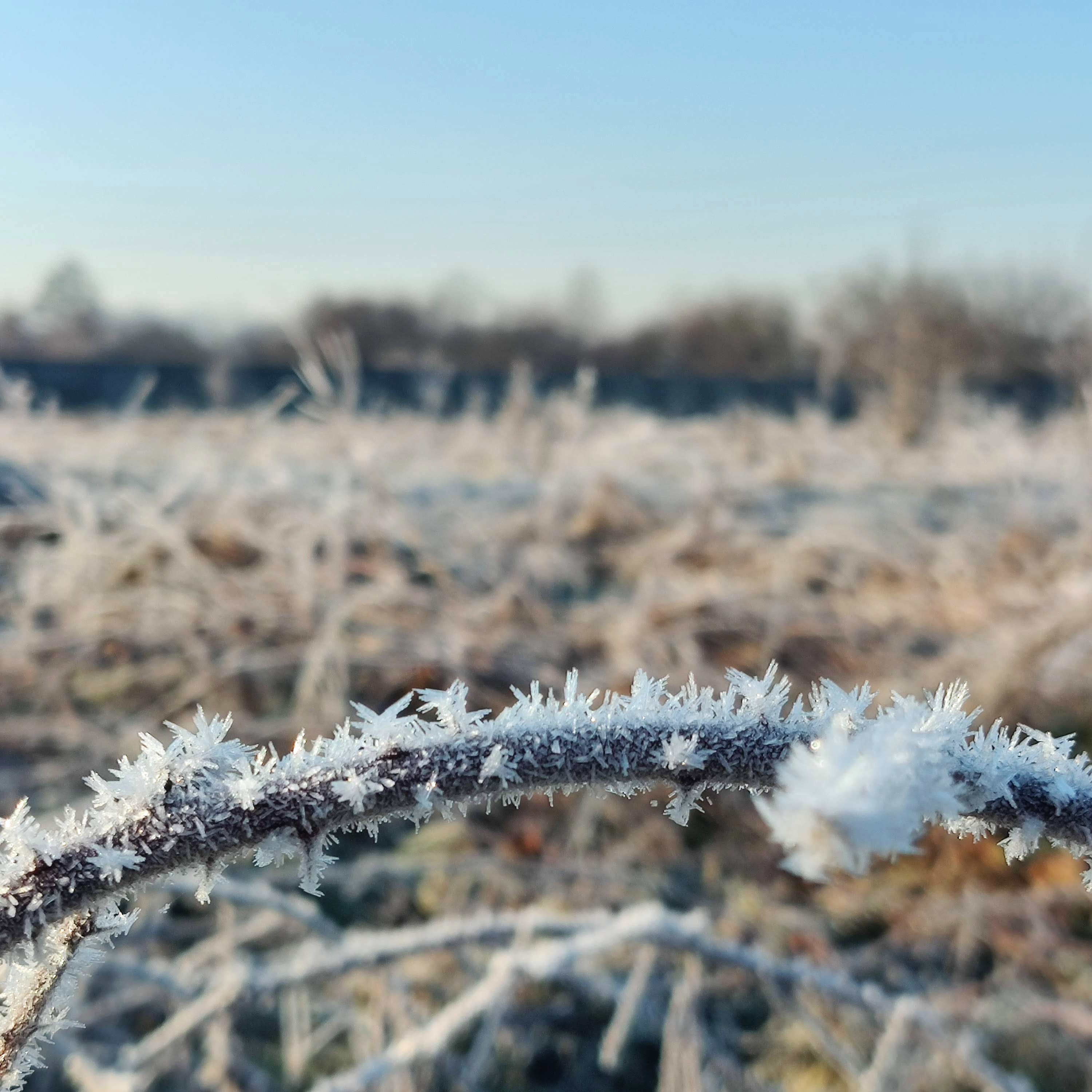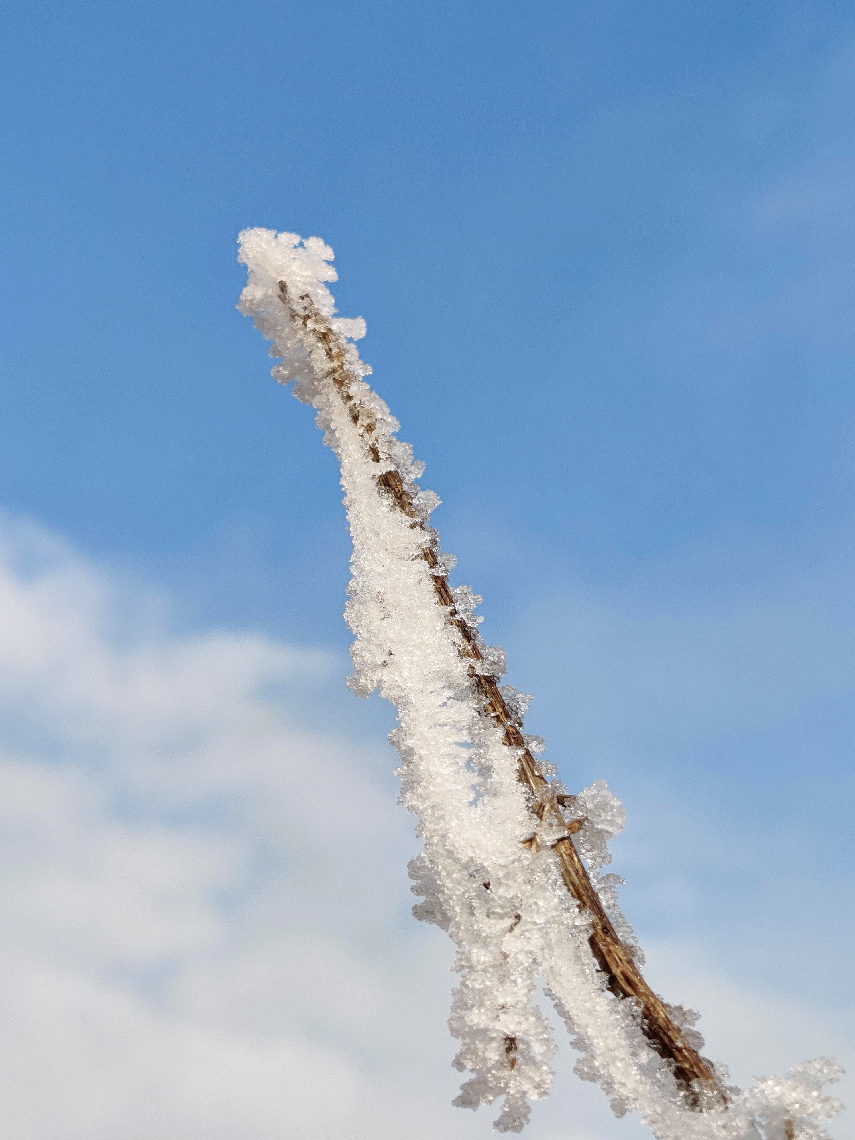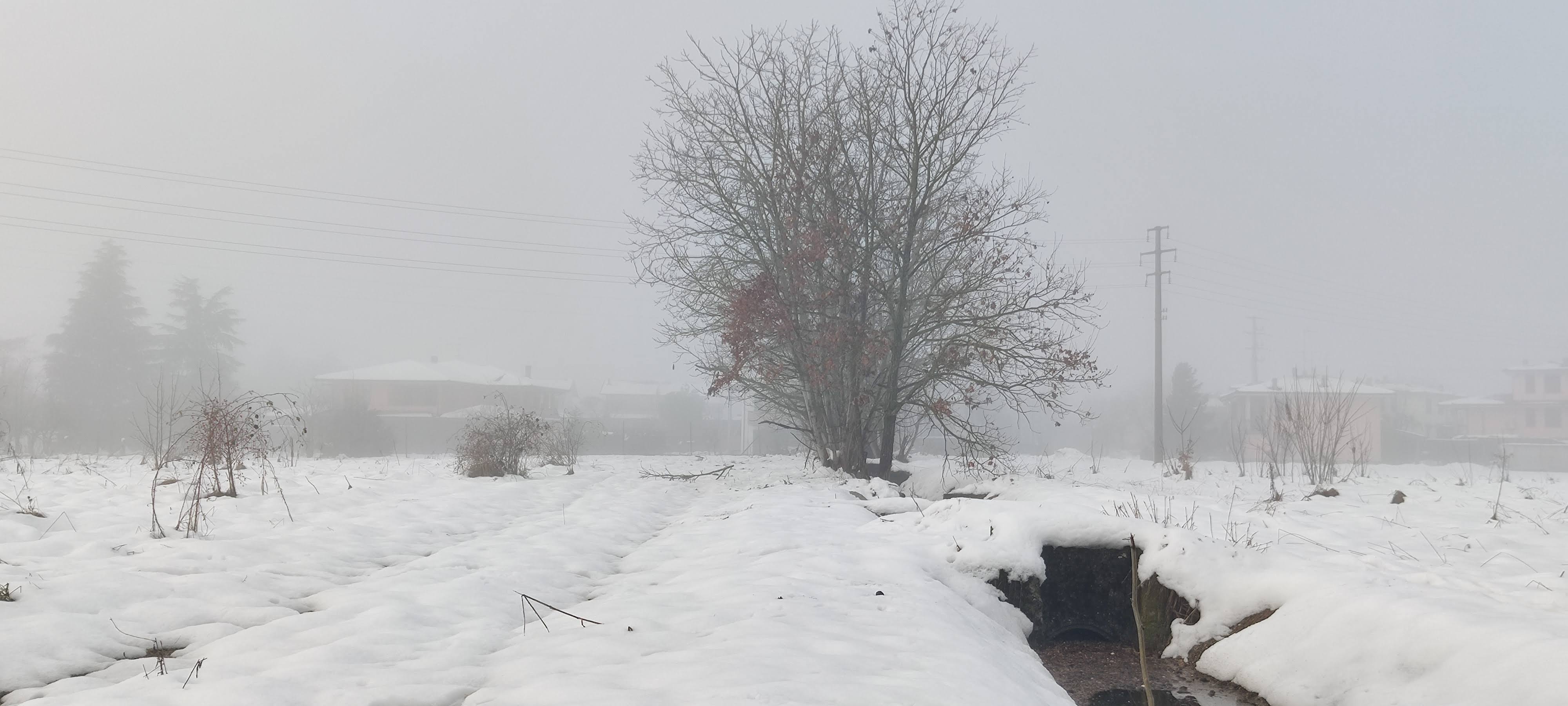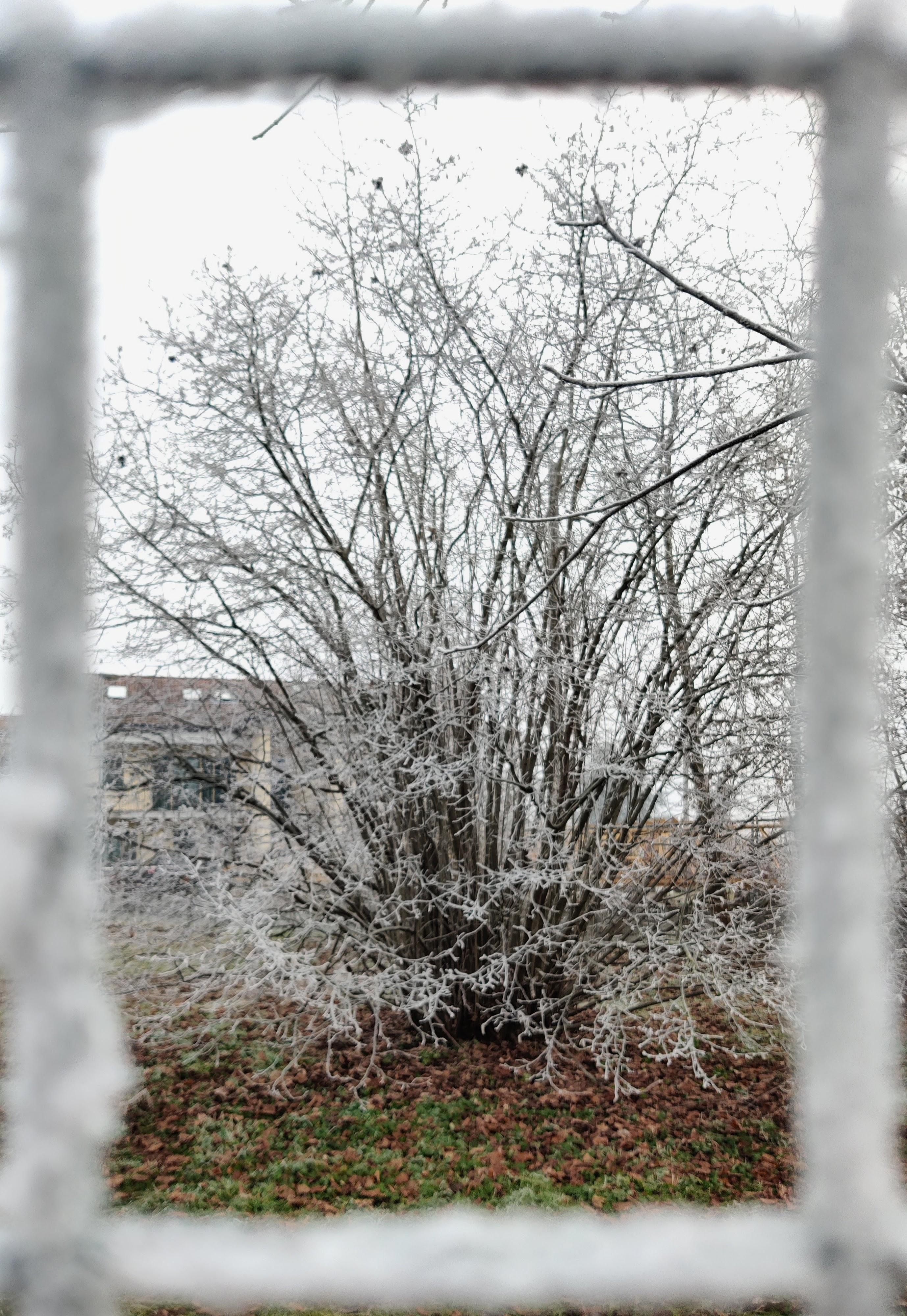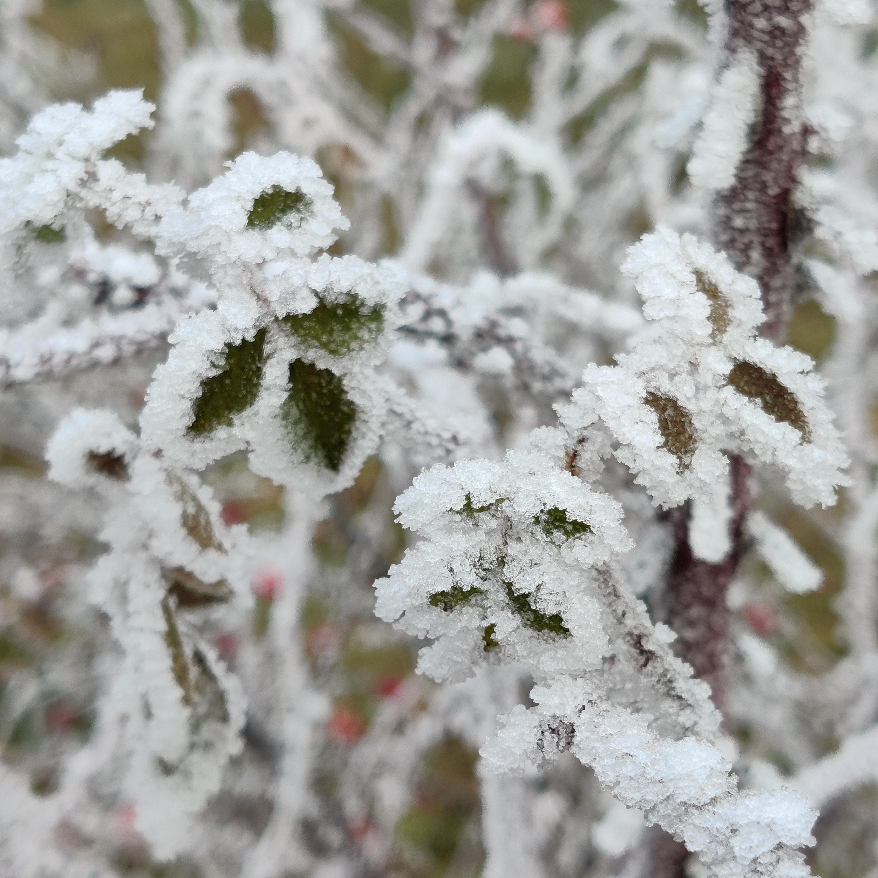 Dopo una giornata di ghiaccio garantita da un fitto e persistente nebbione, l'indomani un pallido sole indora un paesaggio reso fiabesco dalla galaverna.