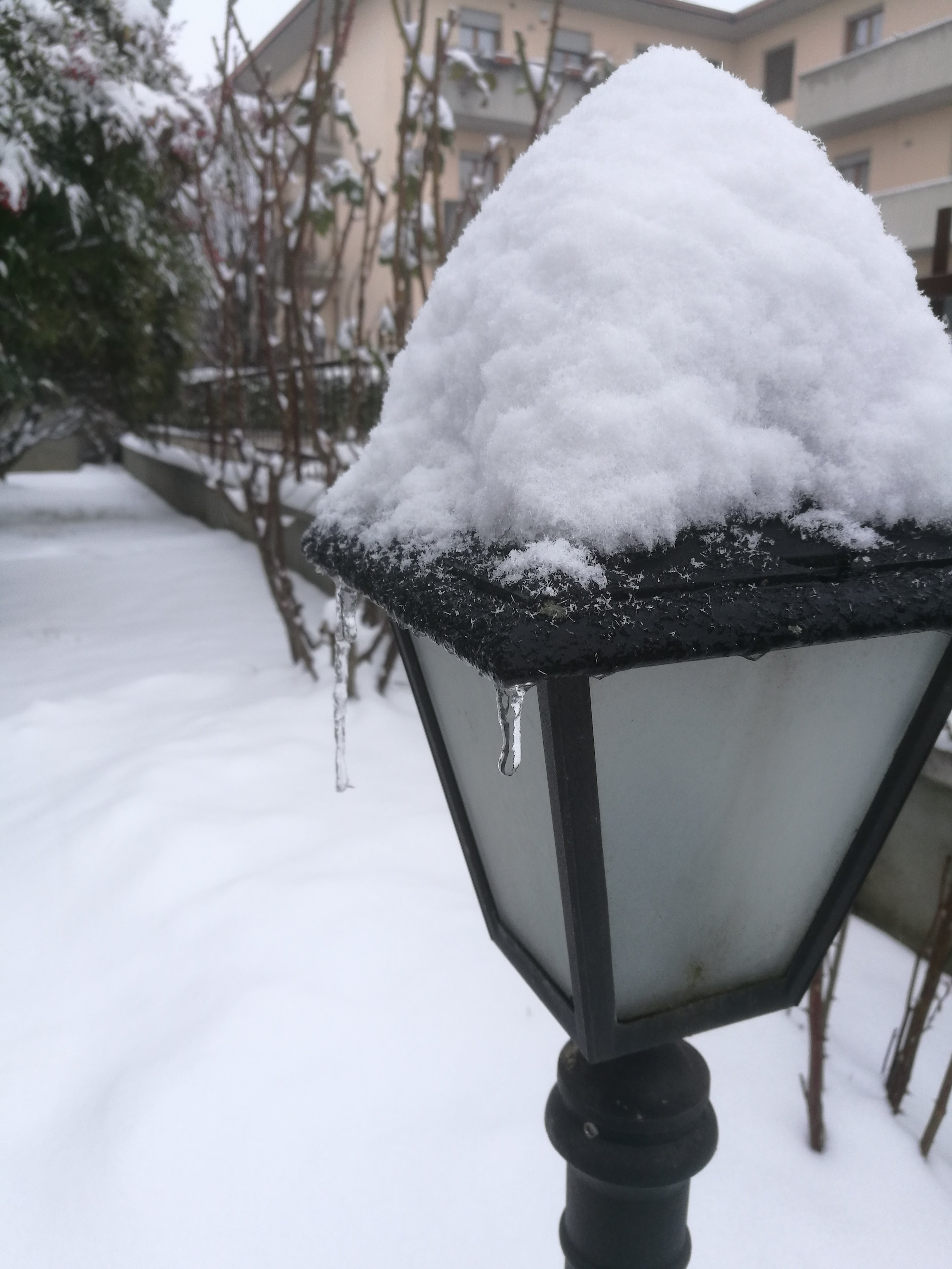 Finalmente, dopo lunga attesa, la sera del 28 il cielo andò coprendosi, e sapevo che le previsioni di Luca Angelini non avrebbero mentito. Rimasi sveglio più del solito, con lo sguardo rivolto al lampione della via, nell'attesa di vedere i primi fiocchi, ma nulla si mosse, ed a una certa ora dovetti desistere, anche perchè il giorno dopo sarei dovuto andare a scuola.