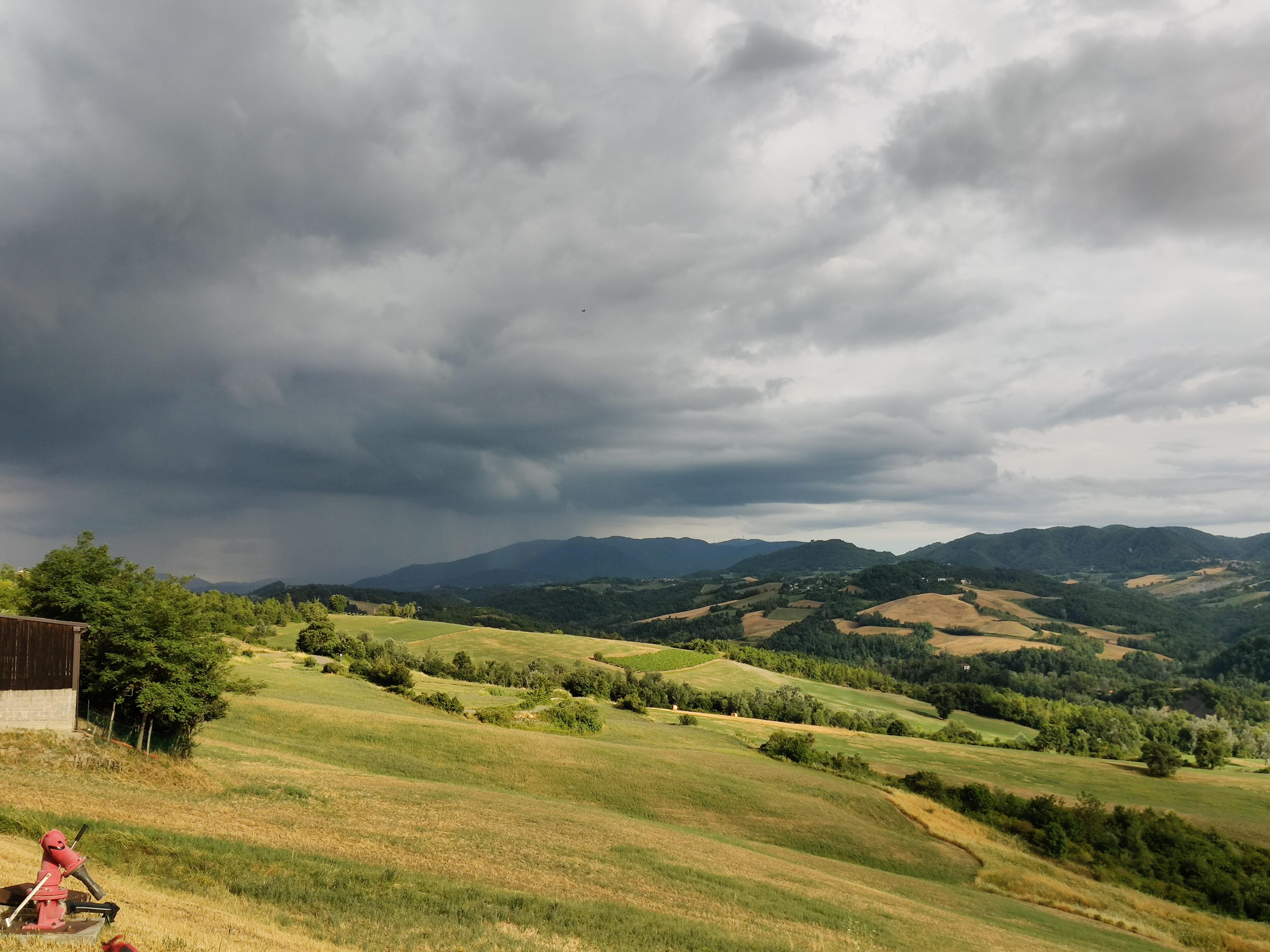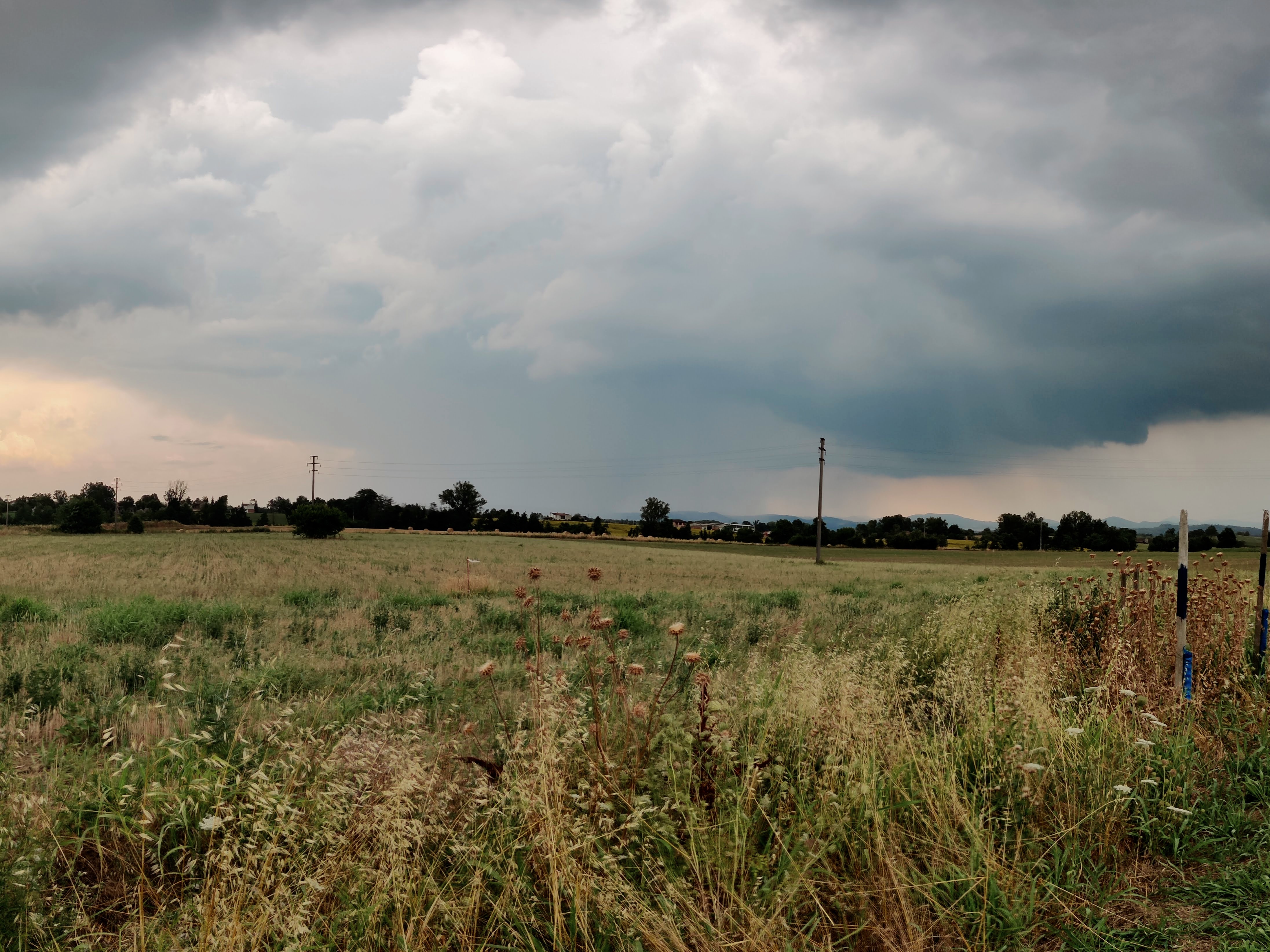 Dopo tanti temporali i cieli tornano sereni e il contesto risulta ben allineato alle medie climatiche, con temperature notturne particolarmente gradevoli. Il 13 finalmente si presenta la tanto attesa perturbazione atlantica, e la goccia fredda cui è legata attraversa tutta l'Italia provocando una rinfrescata e riportando benefiche piogge anche al meridione. Stante lo scarso coinvolgimento delle nostre zone da parte delle linee convettive, e anche a causa della ventilazione persistente e a tratti tesa, il calo termico corposo che ha accusato buona parte del nord qui è risultato lieve ed addirittura nullo nei valori minimi notturni. Solo il 16 un cluster temporalesco con correnti da est riesce a portare un po'di pioggia (4,6 mm) e a proporre qualche scenario coreografico.