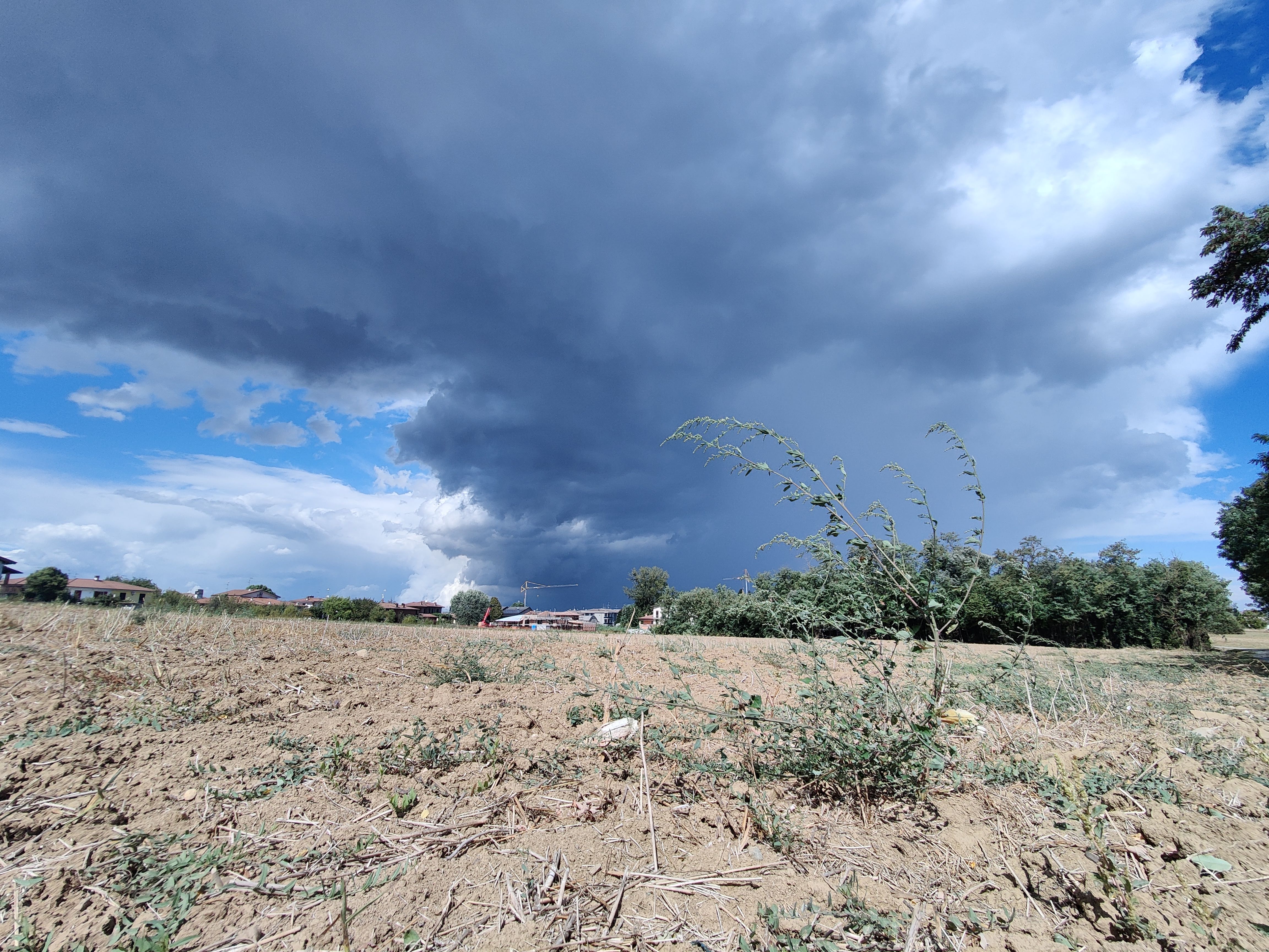 L'alta pressione è dura a morire, ma l'avanzare della stagione autunnale inizia a influenzare il tempo e finalmente arrivano le piogge (ancora poche) ad alleviare lo stress idrico a cui la vegetazione è sottoposta ormai da diversi mesi. A inizio decade una bassa pressione centrata sul nord Italia porta circa 10 mm, ma la prima perturbazione organizzata dell'autunno (l'ultima di questa entità la ritroviamo a inizio luglio) si presenta il 26. Inizia a piovere al mattino con intensità piuttosto bassa ed intermittente, poi i rovesci vanno intensificandosi e nel primo pomeriggio un forte temporale scarica un'ingente quantità d'acqua in pochi minuti (118 mm/h di rain rate massimo), cosicchè entro fine serata l'accumulo raggiunge i 27 mm. Da segnalare è la forte attività elettrica che ha accompagnato l'evento per quasi tutta la sua durata, proponendo anche interessanti scatti fotografici. Puntuale la comparsa della nebbia, che si è presentata il dì seguente: all'alba i fitti banchi interessavano solo le zone più basse della città, ma le brezze mattutine li hanno sospinti anche altrove, e a metà mattinata si concretizza in gran stile la prima comparsa della "dama grigia", con visibilità inferiore a 100 mt! Una densa foschia alternata a qualche banco di nebbia si ripresenta anche il giorno successivo, mentre l'ultimo del mese fa ingresso una forte ventilazione da est che prelude un altro cambiamento del tempo.