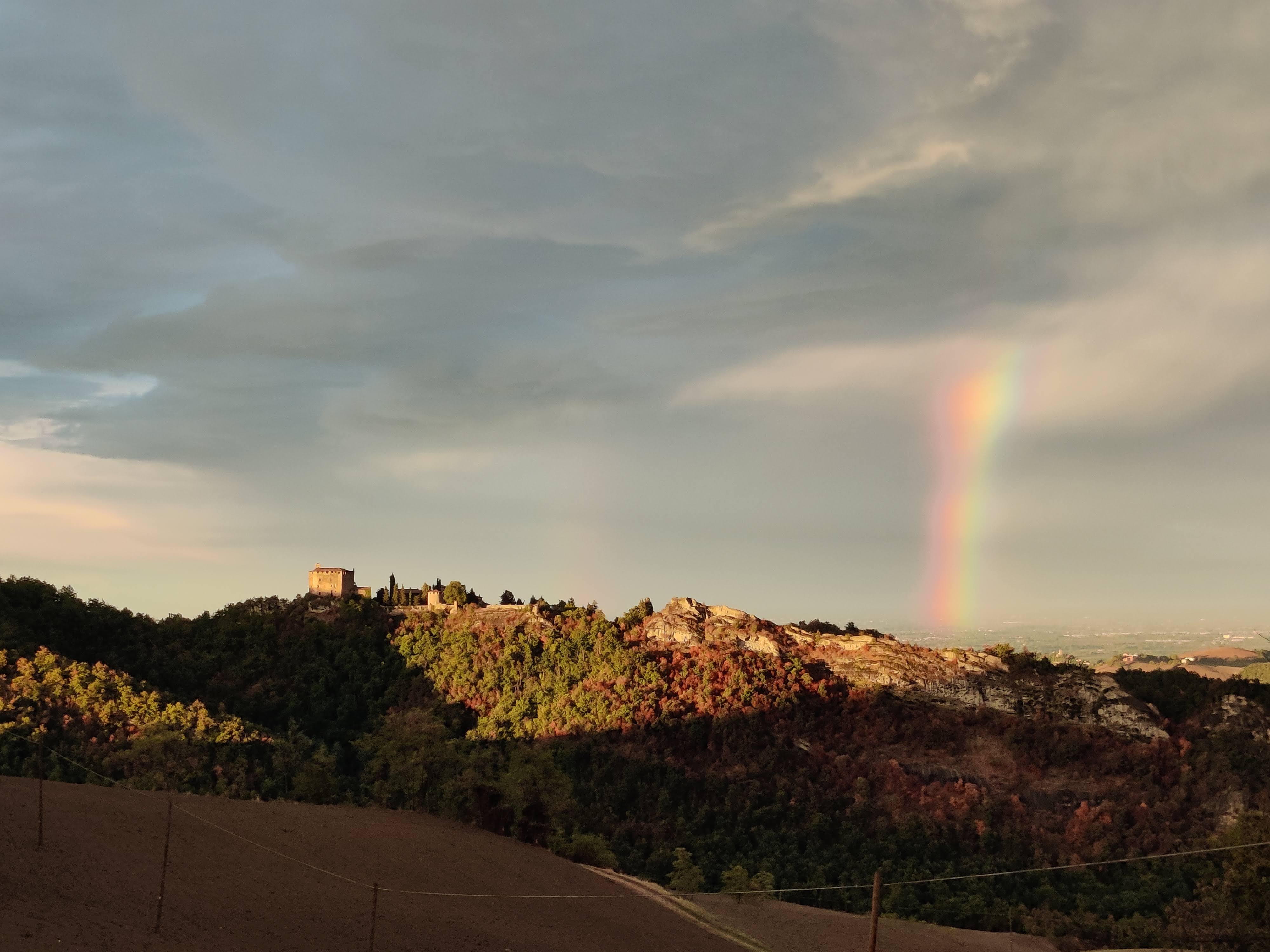 Il mese si apre con una giornata serena, ma un nuovo guasto del tempo dopo quello di fine settembre sembra imminente. Il giorno 4, infatti, avviene il transito di una saccatura atlantica che genera una Genoa Low, ovvero un'area di bassa pressione sul Golfo di Genova, la quale è responsabile del transito di una intensa perturbazione sulle regioni settentrionali. Quando in autunno si rompe il tempo a farne le maggiori spese è spesso la Liguria: questa volta ad essere flagellata dai temporali è la valle Stura, e nel punto di rilevamento di Rossiglione (GE) è stato registrato un accumulo di almeno 850 mm tra il 3 e il 4 ottobre (815 mm in 24 ore, dei quali però ben 740 in 12 ore ovvero il nuovo record europeo), un valore che ha pochi precedenti nella storia meteorologica del paese. Basti pensare che in alcune aree del pavese, tra le più colpite, si sono osservati accumuli non superiori a 100 mm nelle 24 ore, e che più a est tali accumuli scendono uniformemente sotto quota 50 pure sommando la pluviometria dal 3 al 6 ottobre (qui a Castel San Giovanni ci fermiamo a 27 mm). Di questa fase, curiosa è stata la comparsa sia degli ultimi temporali che delle prime nebbie mattutine. Successivamente la depressione si isola sull'Italia centrale richiamando dell'aria fredda che era stata sospinta fin sui Balcani da un'altapressione presente sulla Russia, ma, sebbene in quota si inizi a risentire di un deciso calo delle temperature, tiepide giornate di sole alternate a notti con cieli spesso sporcati da nubi mantengono la temperatura su valori piuttosto elevati, specie le minime. Degno di menzione è senz'altro lo splendido arcobaleno a doppio arco del 6 ottobre.