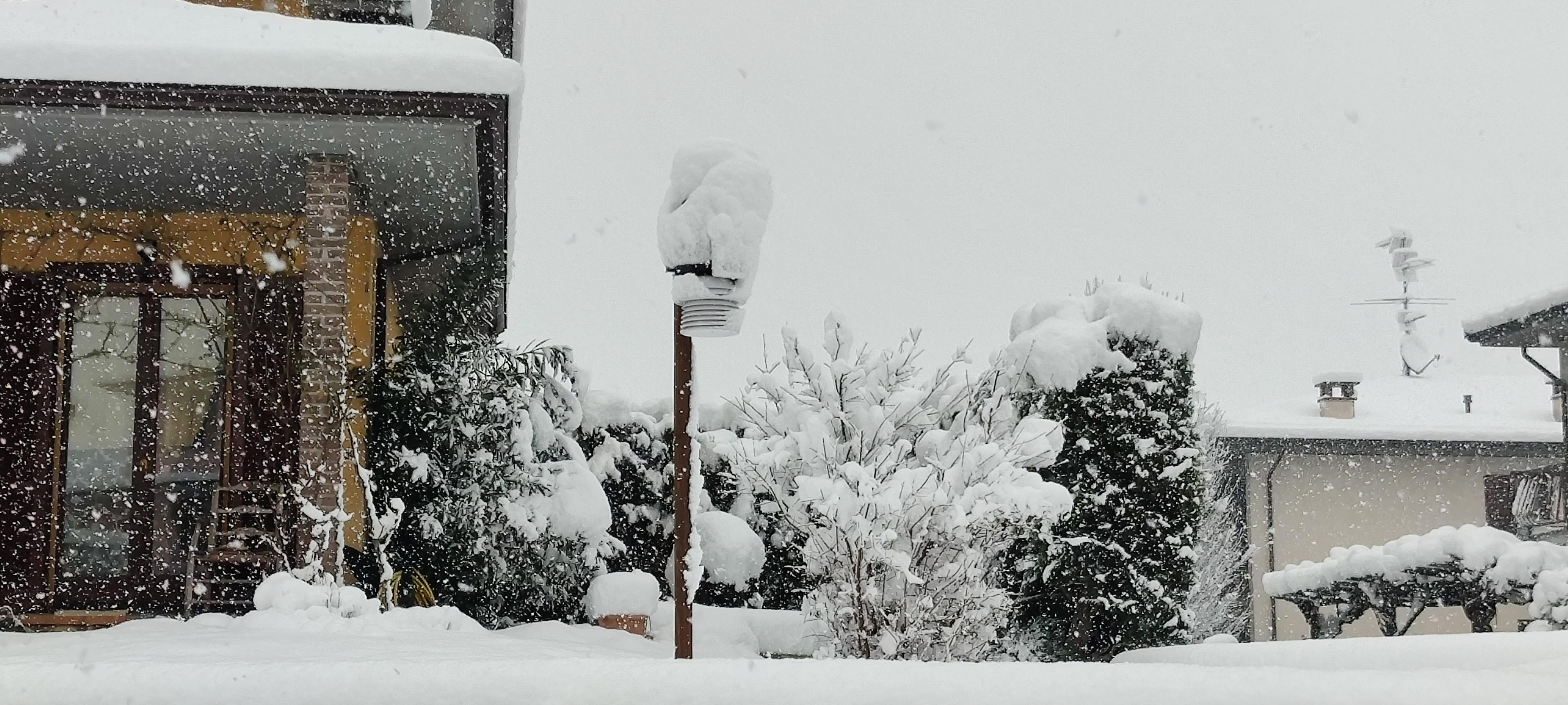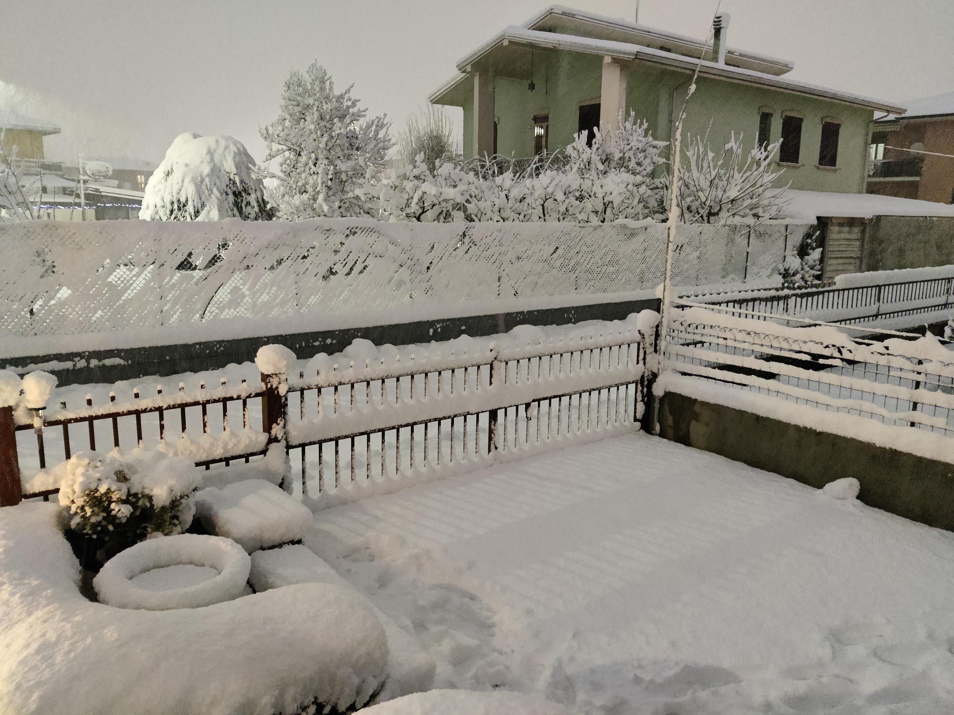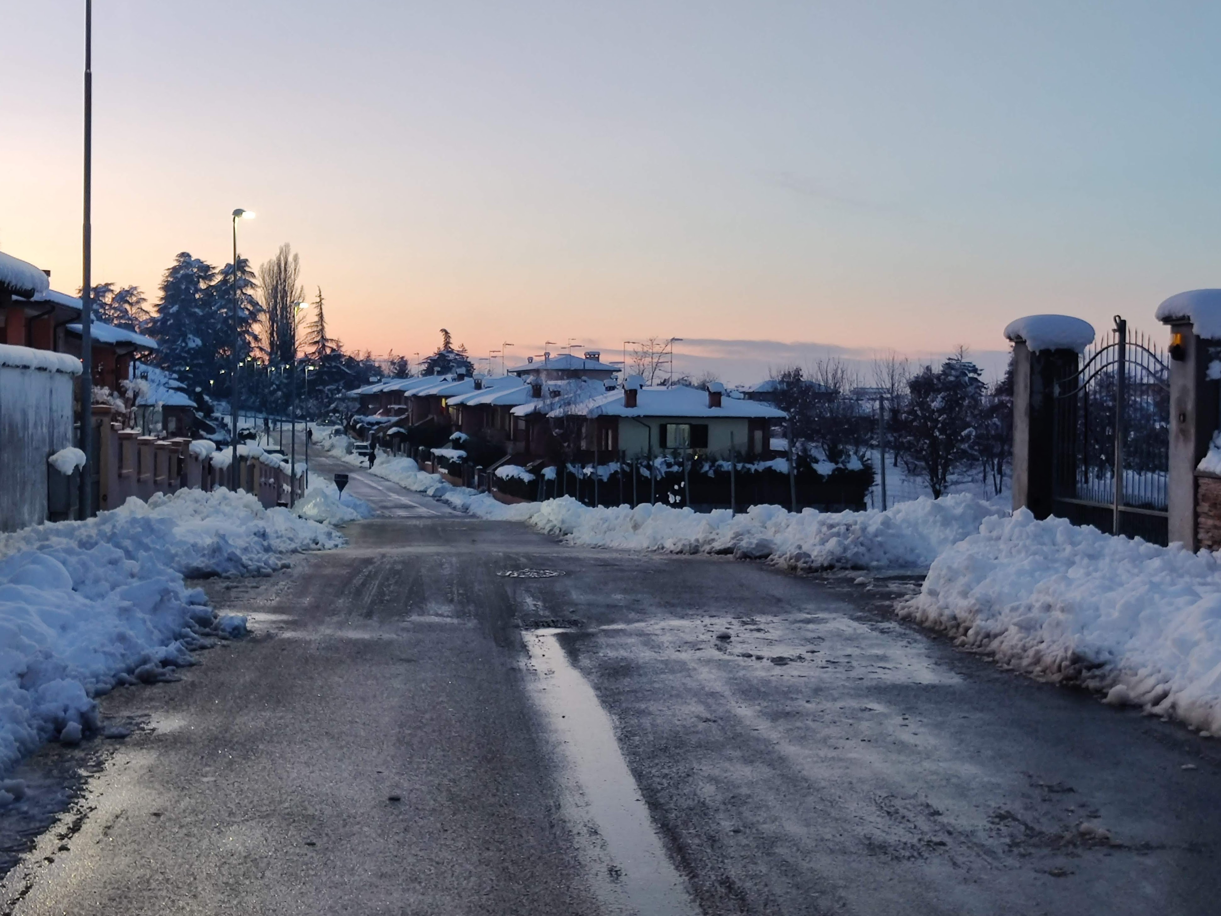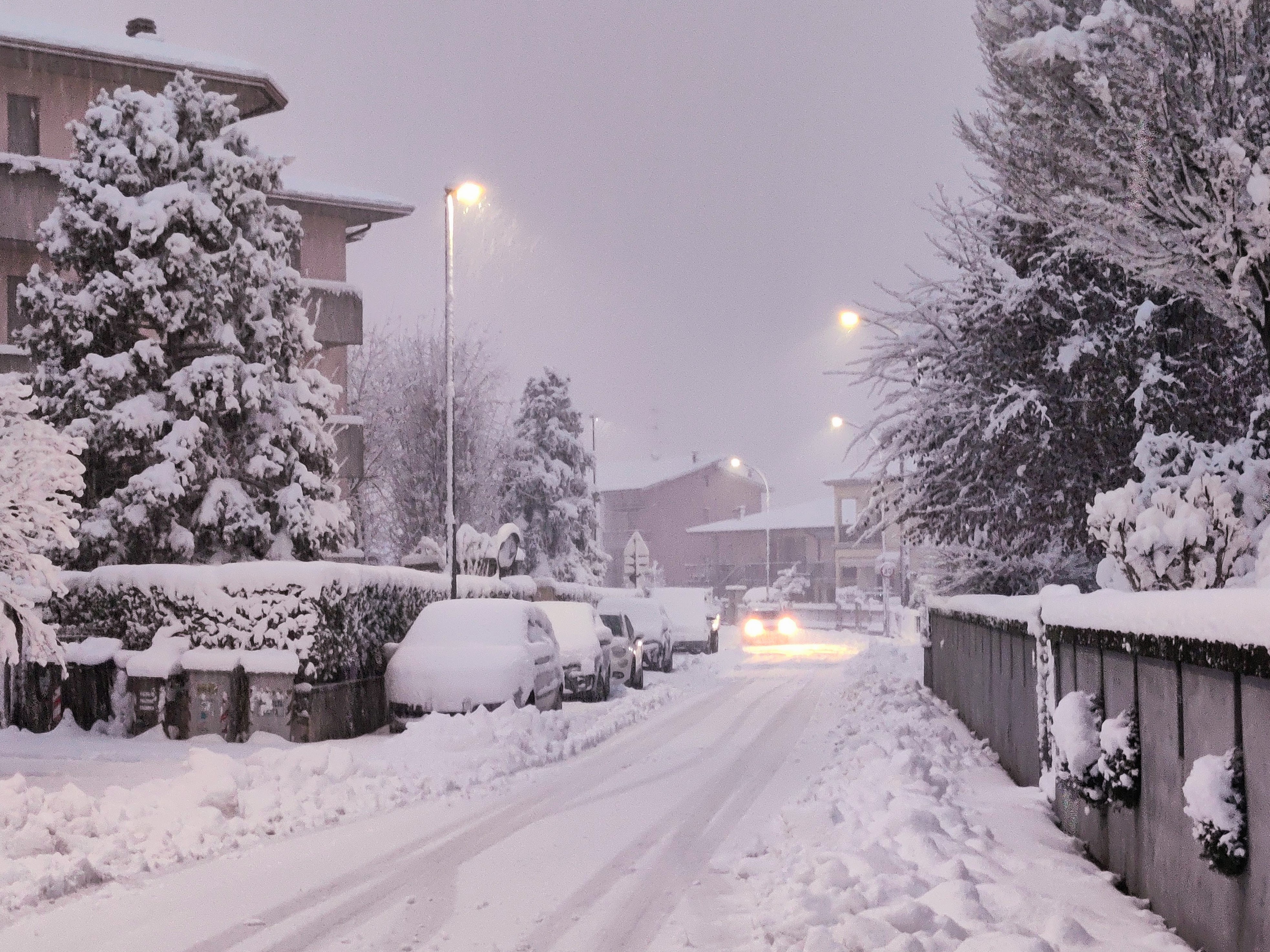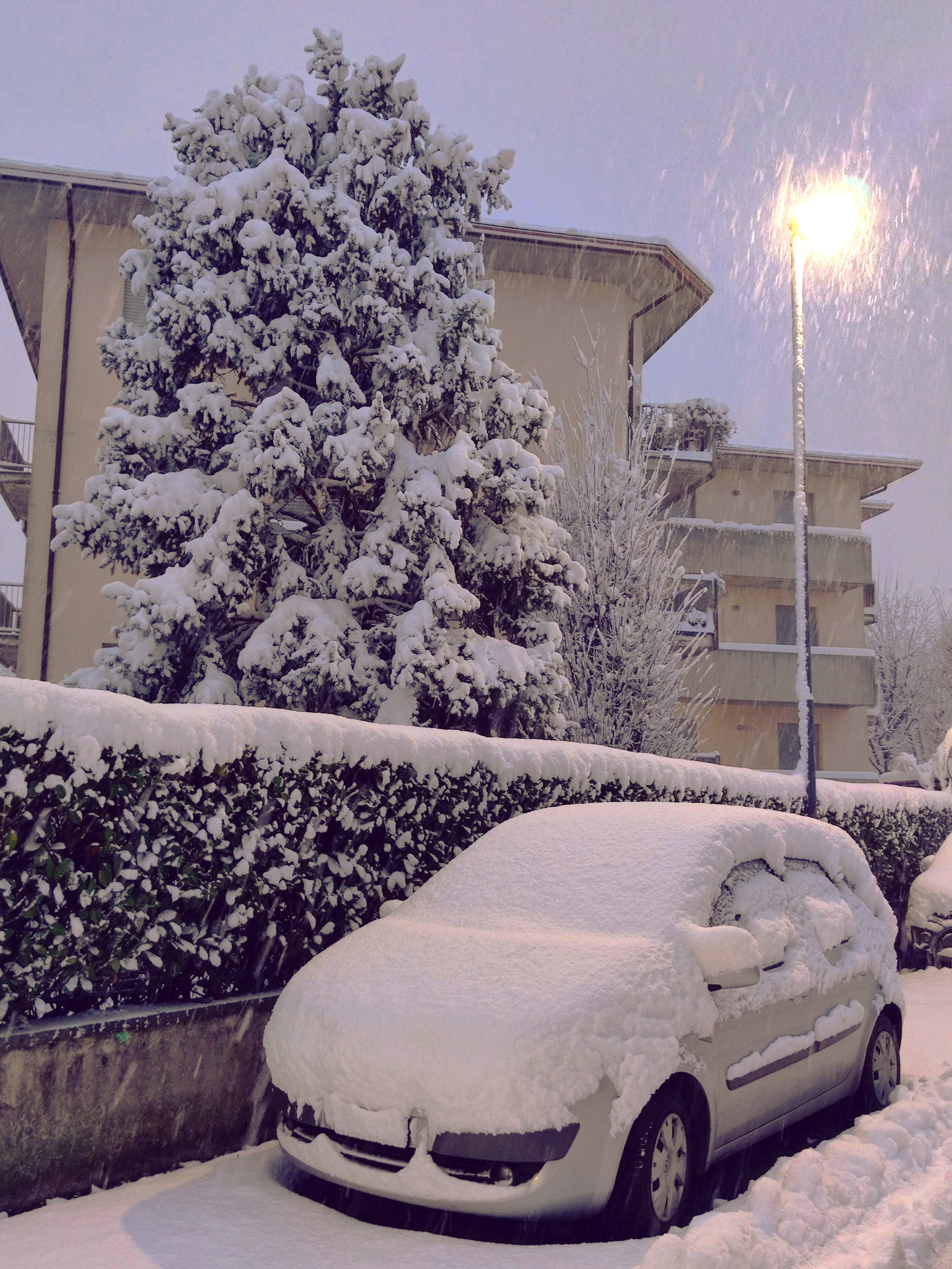 E in mancanza di fusione del manto nemmeno il sale sparso il giorno prima non ha potuto fare nulla. Mi aggiravo rimirando quello spettacolo della natura realizzato con una rapidità eccezionale, ogni parola era superflua. Era ora di spalare, ma con gran cura cercavo di realizzare mucchi di neve per provare a conservarne un po'fin verso la fine dell'inverno. Dopo aver ripulito anche il cortile della mia vicina di casa, io e un mio amico ci fermammo a mangiare un bel piatto di tagliatelle, con vista su quel paesaggio a cui ancora non credevamo a pieno. Nel pomeriggio quel cielo da neve lasciò spazio all'avanzare rapido delle schiarite da ovest verso est. Io e un altro mio amico sfruttammo la neve fresca e intatta per provare l'ebbrezza di girare con le moto da enduro in quelle condizioni. Ma ben presto venne l'ora di tornare: l'effetto albedo provocato dal manto non perdona, e tornarsene a casa dopo le 18.00 può significare beccarsi temperature glaciali. A puntellare i termometri ci pensò per un po' la brezza post perturbazione da NW, poi si piomba nel freddo padano più intenso, con i -8 gradi toccati alle 22.00 e rapido ghiacciamento della coltre nevosa, la quale luccicava alla luce dei lampioni e delle luminarie, trasformando una qualunque vista dalla finestra di casa in una magnifica cartolina natalizia. Nei giorni successivi spazio al divertimento e alle discese sulla neve. Per tutti noi ragazzi si è trattato di riscoprire un mondo del quale, forse, ci eravamo un pochettino dimenticati.