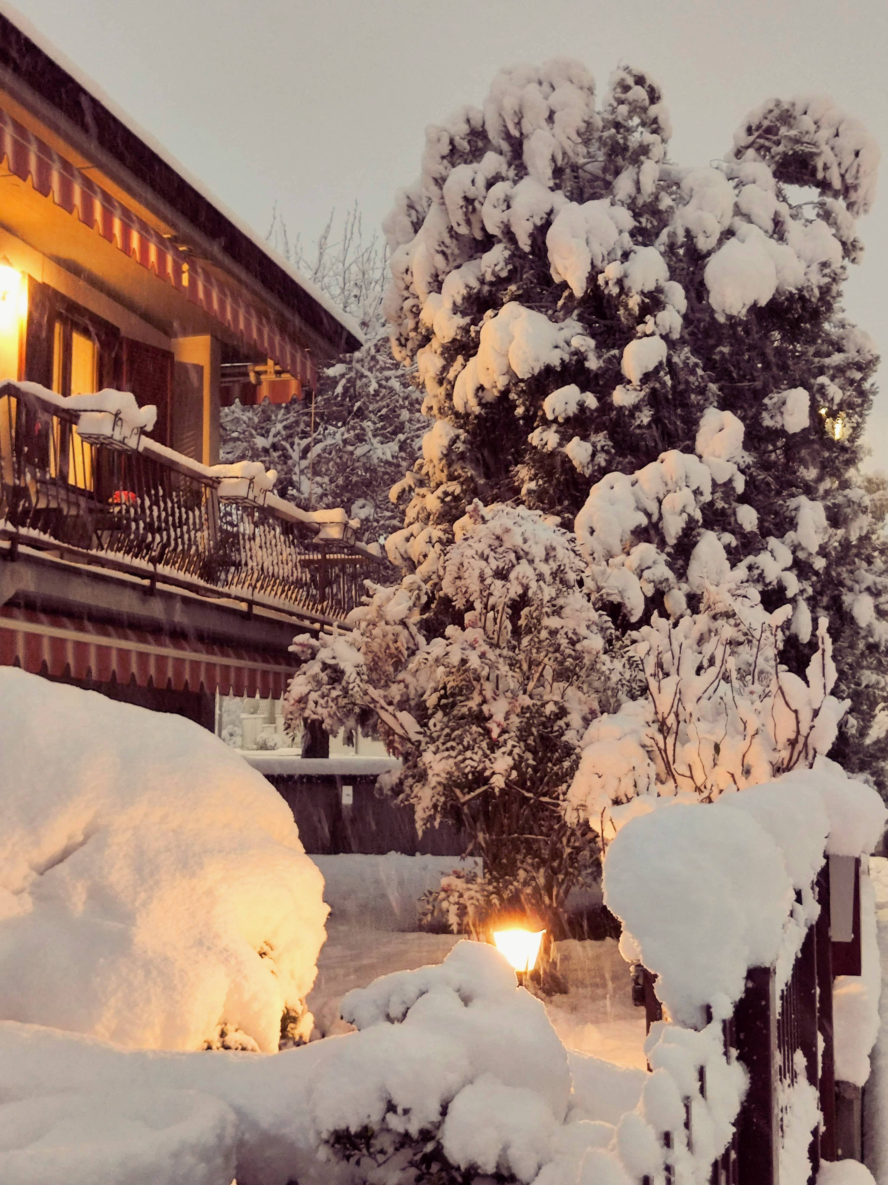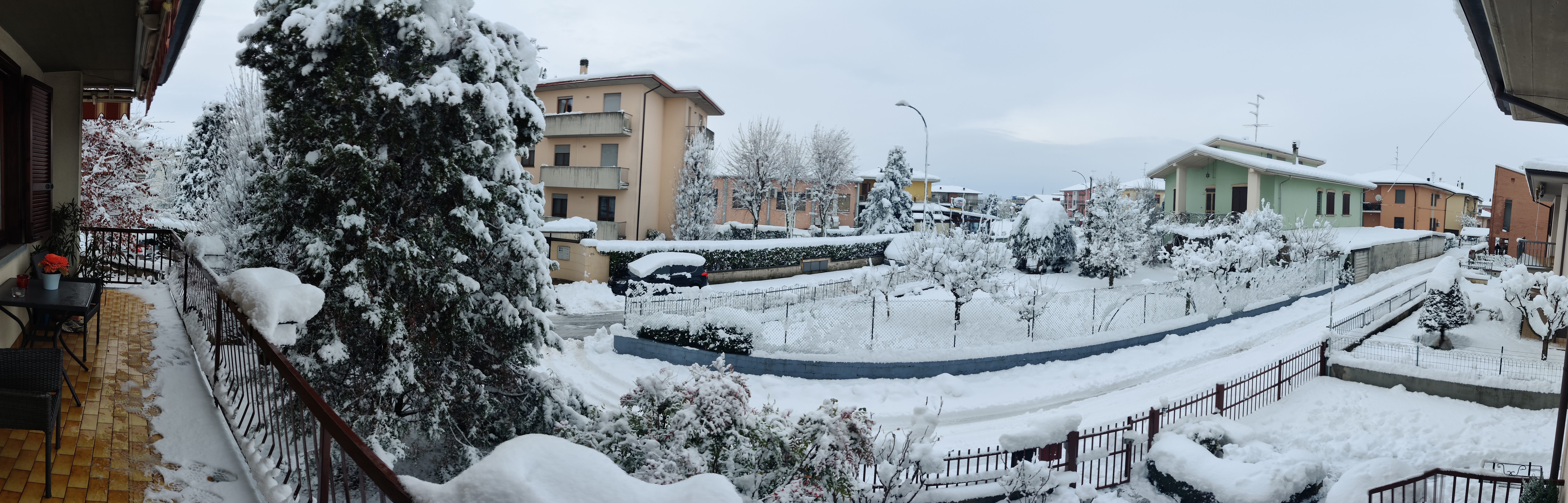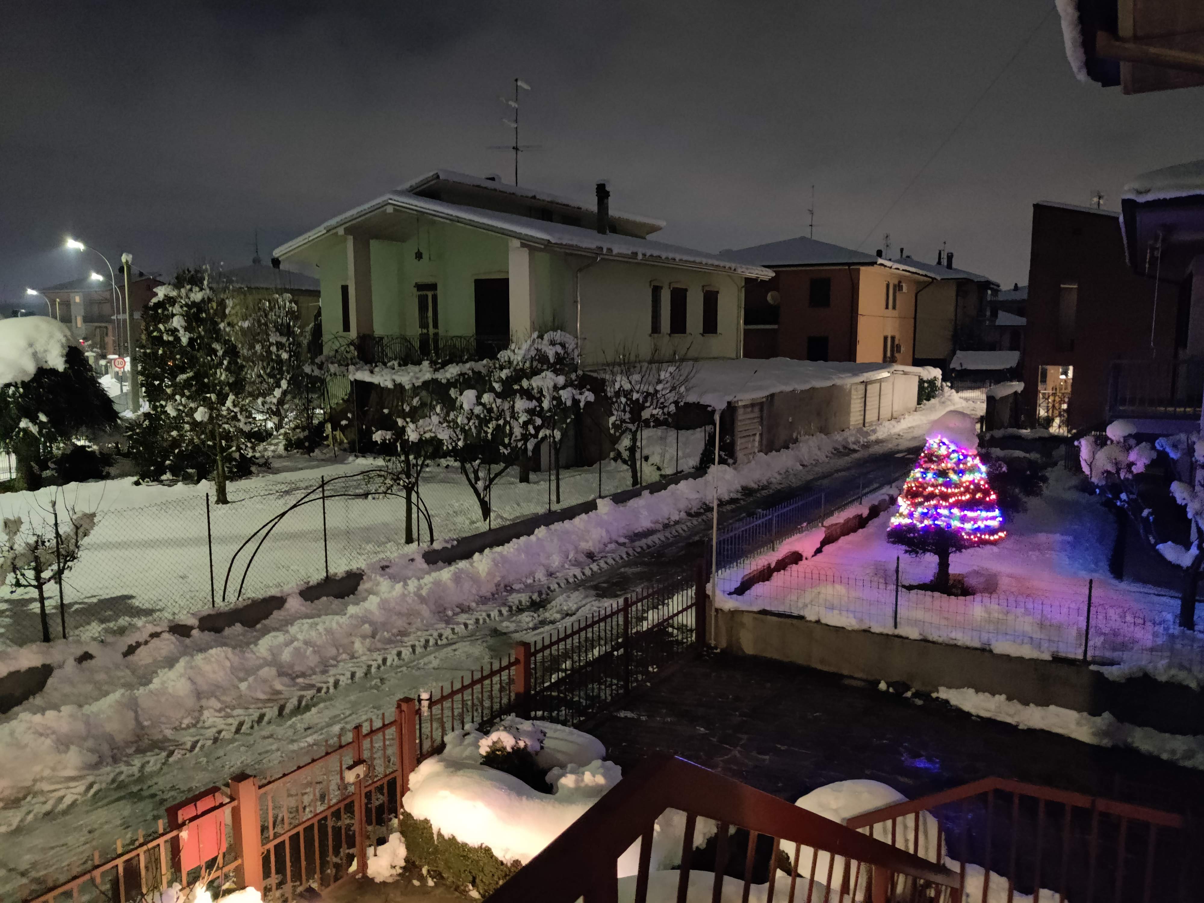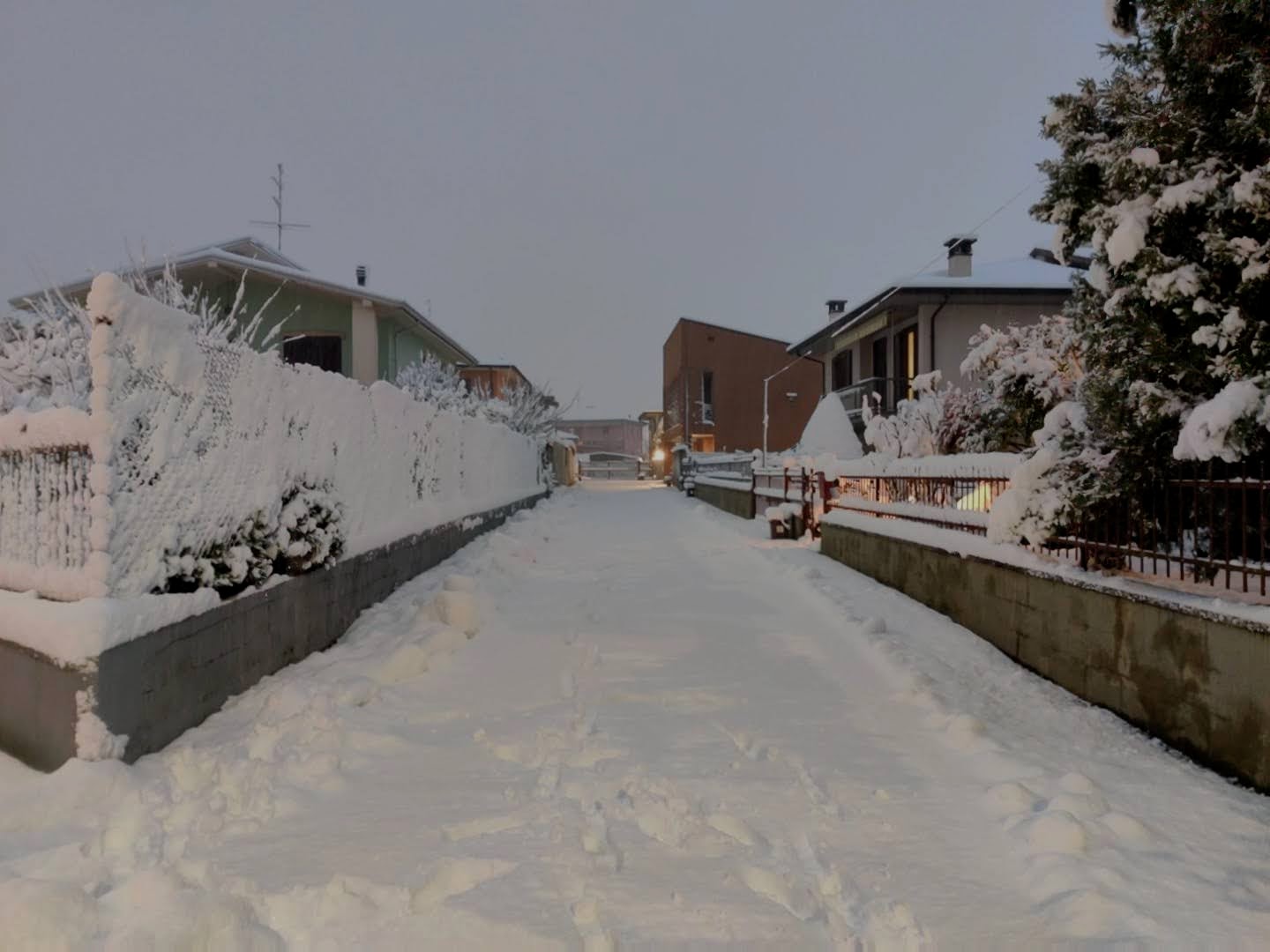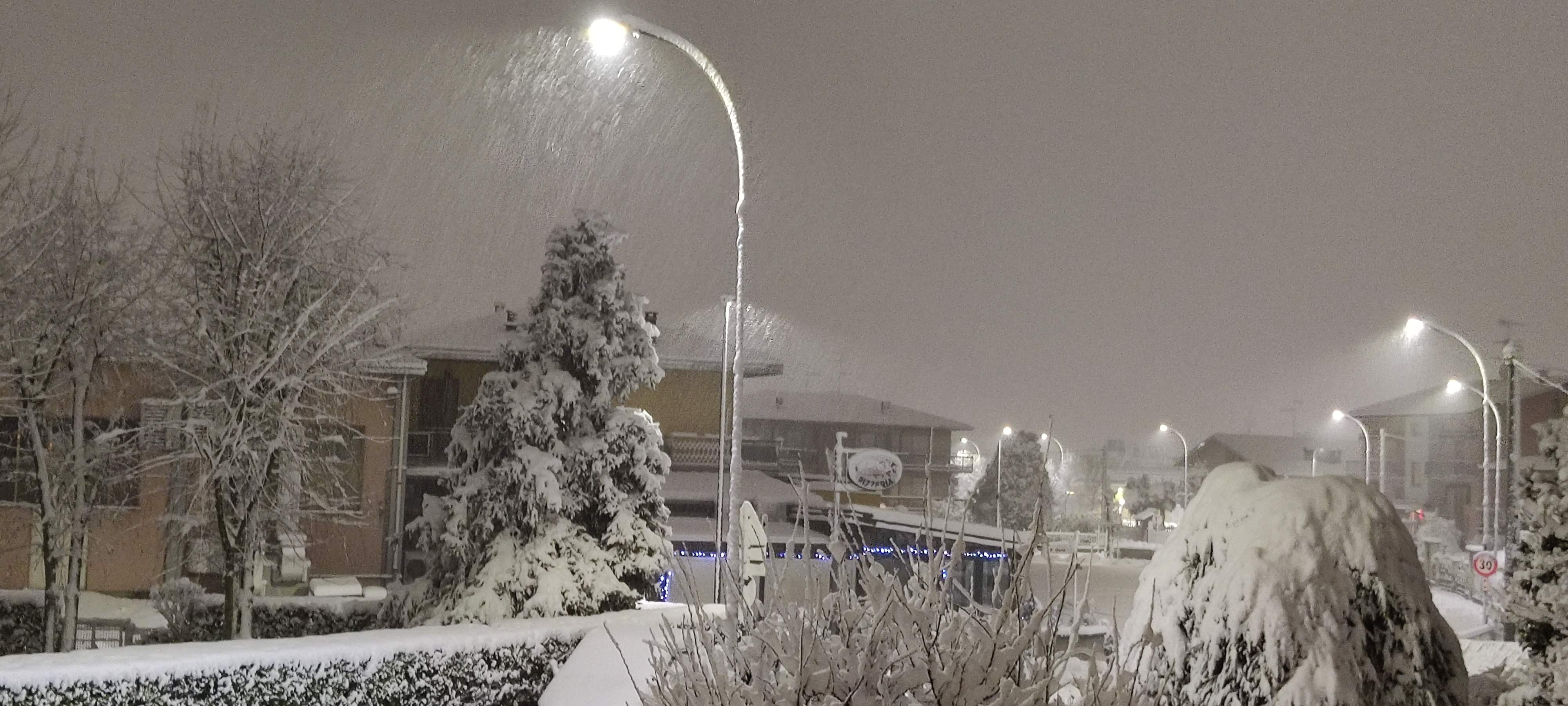 E in mancanza di fusione del manto nemmeno il sale sparso il giorno prima non ha potuto fare nulla. Mi aggiravo rimirando quello spettacolo della natura realizzato con una rapidità eccezionale, ogni parola era superflua. Era ora di spalare, ma con gran cura cercavo di realizzare mucchi di neve per provare a conservarne un po'fin verso la fine dell'inverno. Dopo aver ripulito anche il cortile della mia vicina di casa, io e un mio amico ci fermammo a mangiare un bel piatto di tagliatelle, con vista su quel paesaggio a cui ancora non credevamo a pieno. Nel pomeriggio quel cielo da neve lasciò spazio all'avanzare rapido delle schiarite da ovest verso est. Io e un altro mio amico sfruttammo la neve fresca e intatta per provare l'ebbrezza di girare con le moto da enduro in quelle condizioni. Ma ben presto venne l'ora di tornare: l'effetto albedo provocato dal manto non perdona, e tornarsene a casa dopo le 18.00 può significare beccarsi temperature glaciali. A puntellare i termometri ci pensò per un po' la brezza post perturbazione da NW, poi si piomba nel freddo padano più intenso, con i -8 gradi toccati alle 22.00 e rapido ghiacciamento della coltre nevosa, la quale luccicava alla luce dei lampioni e delle luminarie, trasformando una qualunque vista dalla finestra di casa in una magnifica cartolina natalizia. Nei giorni successivi spazio al divertimento e alle discese sulla neve. Per tutti noi ragazzi si è trattato di riscoprire un mondo del quale, forse, ci eravamo un pochettino dimenticati.