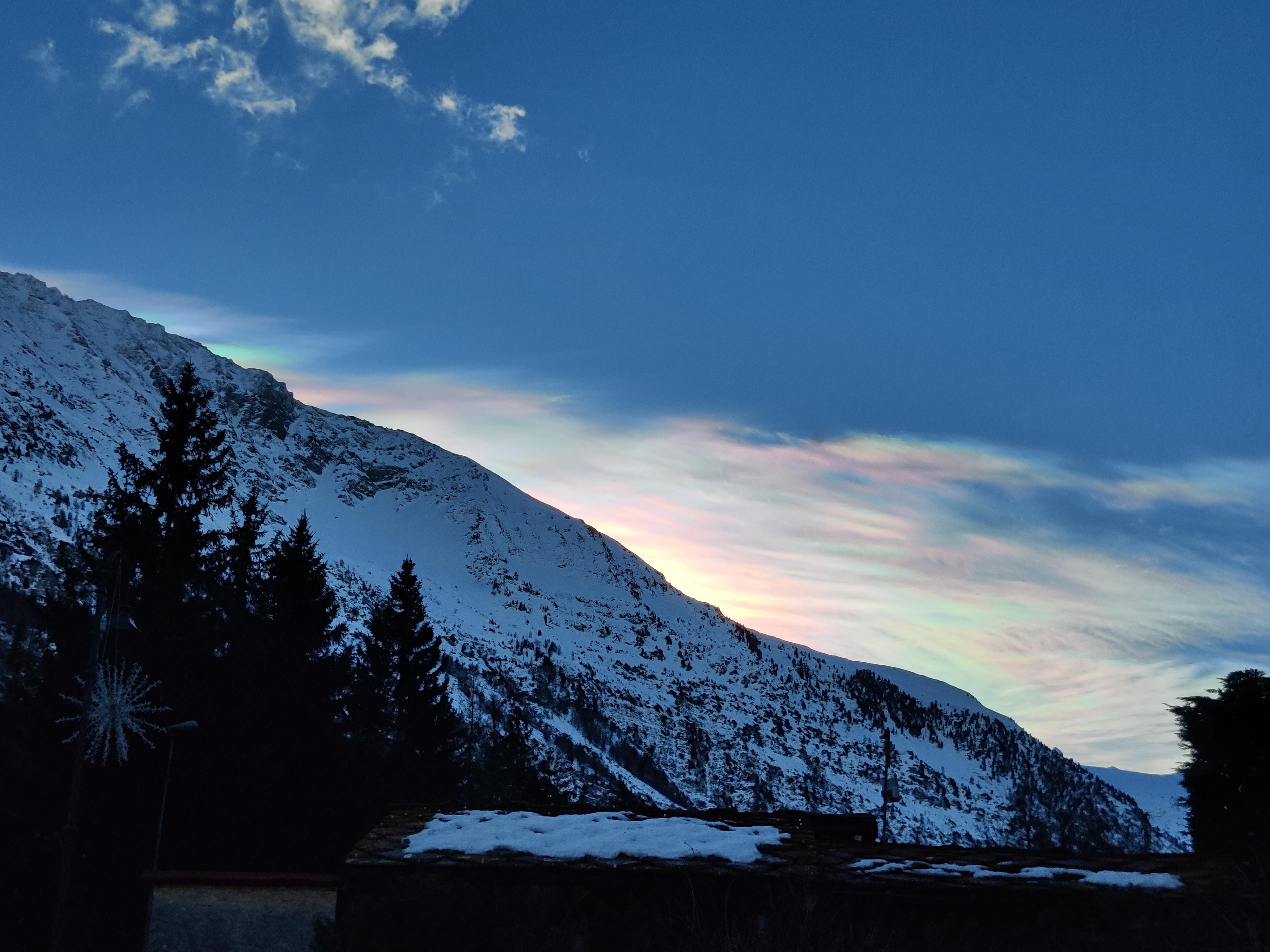 I fenomeni annessi alle correnti di Foehn sono ovviamente assenti nel versante sottovento, tuttavia è comunque possibile osservare la formazione di rare figure meteorologiche date dal sollevamento dell'aria, indotto dalla catena montuosa, che può propagarsi fino alla stratosfera. Generalmente si instaurano dei rotori sulla cui sommità la poca umidità presente a quelle quote può, in casi molto rari, condensare in armoniose nubi lenticolarmi, che date le bassissime temperature sono composte da cristalli di ghiaccio (l'acqua in assenza di nuclei di condensazione passa allo stato solido a -40°C). Questi cristalli creano effetti di rifrazione della luce responsabili di sfumature colorate, note come nubi iridescenti.