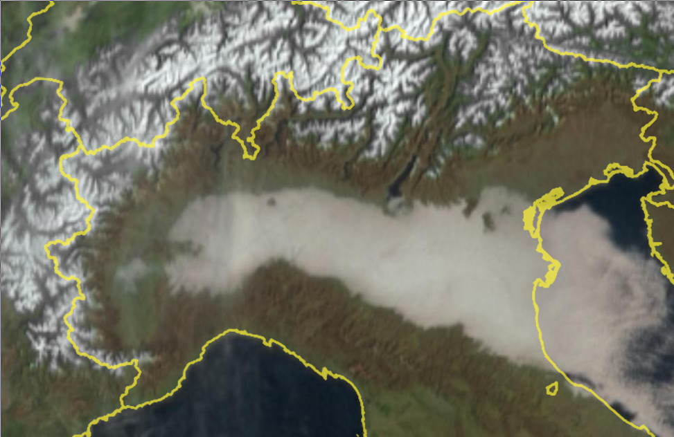 Il 10 gennaio il cielo torna a rasserenarsi, e l'aria fredda ha modo finalmente di sedimentare: nei giorni seguenti si registrano così estese e intense gelate al nord, con valori prossimi a -6°C in provincia, conditi da nebbie diffuse come mostrano le immagini satellitari qua sotto. La notte più fredda qui si registra il 13, con -4,1°C. Le temperature risalgono invece in quota grazie alla maggiore invadenza di un debole prontorio anticiclonico, ma lo scorrimento di un veloce impulso sui Balcani le mantiene prossime ai valori tipici di questo periodo.