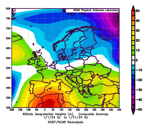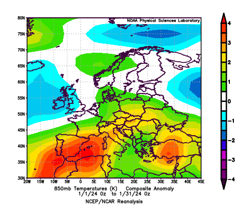 Come mostra l'immagine 1 a piè paragrafo, il mese di gennaio che si è concluso è stato caratterizzato sull'Europa mediterranea (in particolar modo occidentale) da anomalie di geopotenziale positive, il che è sintomo di pressioni superiori alla norma a causa di una persistenza di figure anticicloniche particolarmente prolungata. In diversi casi, inoltre, è stata registrata un'intensità prossima agli estremi percentili per questi anticicloni, il che significa che si è trattato di figure assolutamente anomale in questa stagione. L'immagine 2 riassume invece le anomalie di temperatura a 1500 metri di altitudine in libera atmosfera, e mette in risalto il particolare coinvolgimento delle regioni settentrionali, mentre le estreme meridionali sono state in parte risparmiate. Tuttavia, da quanto si può cogliere sotto i commenti agli articoli meteo, la percezione dell'opinione pubblica non è così diffusamente quella di un gennaio anomalo, e sebbene le opinioni non siano dati scientifici è pur vero che se queste sono in completo disaccordo con essi occorre approfondire le ragioni di tale discordanza.
