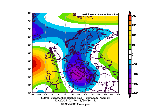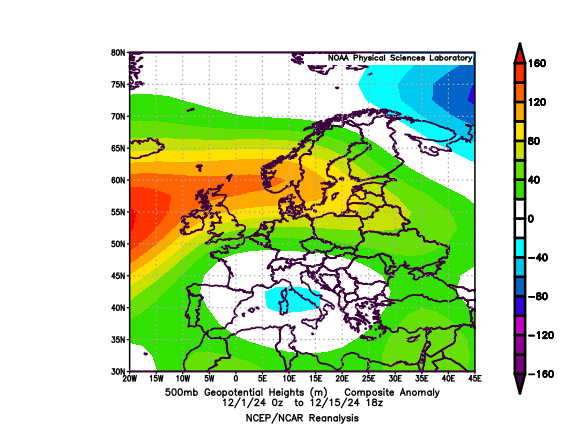 Il primo mese dell'inverno meteorologico è trascorso condizionato da condizioni in prevalenza stabili e moderatamente fredde per reiterato affondi da NW rispetto ai quali le Alpi ci offrono buona protezione. L'unica parentesi di maltempo invernale si è concretizzata alla fine della prima decade, grazie ad un affondo più occidentale. La prima quindicina del mese ha risentito di una circolazione fredda con reiterati affondi artico-marittimi con asse di saccatura centrato sull'Italia. In presenza di NAO e AO stabili su condizioni neutre e di una MJO in fase 5 mi sarei aspettato un asse di saccatura sul meridiano di Greenwich, tuttavia è possibile che la zonalità vivace e l'effetto "calamita" di una goccia fredda arenata sull'Egeo abbiano contribuito a piegare la parte terminale dell'asse di saccatura verso est. L'entrata in territorio negativo di NAO e AO sul finire della prima decade ha comunque prodotto l'atteso ovest-shift della saccatura e una maggiore ampiezza dell'ondulazione, con conseguente cut-off in corrispondenza del Mediterraneo occidentale. Il rapido ribaltamento dei suddetti due indici, con NAO in risalita positiva, ha sbloccato la situazione favorendo il rialzo del flusso perturbato sull'Italia (con passaggio di code perturbate al nord verso metà mese) spostando gli affondi al di là della Turchia. La discontinuità introdotta dalla parentesi anticiclonica ha permesso un reset della circolazione mediterranea: il passaggio in fase 6 della MJO, unitamente a condizioni di NAO positiva ha permesso l'affondo su un asse centrato fra Italia e Balcani, con circolazione fredda e asciutta al nord e frequenti fenomeni favonici, prima di un nuovo sblocco zonale a fine mese.