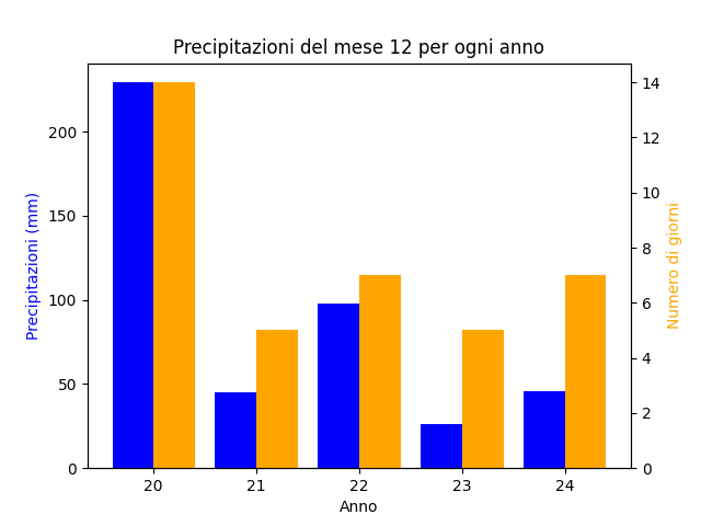 Per la terza volta si registra un mese con piovosità inferiore alla media in questo eccezionale 2024: soltanto 45,8 mm in dicembre, distribuiti in 7 giorni, caduti quasi tutti in un unico peggioramento.