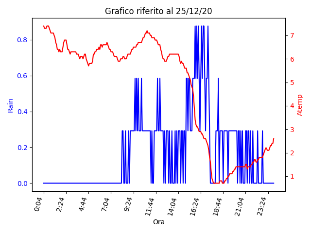 Quest'ultimo rapido scatto verso il basso è provocato dall'arrivo graduale delle prime precipitazioni con una componente solida al loro interno: all'azione di rovesciamento del freddo verso il basso, si aggiunge così una sottrazione di calore dovuto al passaggio di stato da ghiaccio ad acqua dei miliardi di fiocchi di neve. Tanto più è intensa la precipitazione, maggiore è la velocità del tracollo termico, ma in ogni caso la fase di transizione è generalmente molto rapida, riducendo lo stato di acquaneve (la precipitazione mista) a pochi minuti. Ma non è stato il caso della scorsa serata, quando, mentre nella vicina Borgonovo nevicava copiosamente da diversi minuti con temperatura di 0°C, a Castel San Giovanni pioveva con qualche fiocco fra la pioggia, e questa situazione con precipitazioni semi-solide, invece di risolversi con un veloce passaggio a neve, si è mantenuta stabile con temperatura fra +1,7°C e +2,0°C.