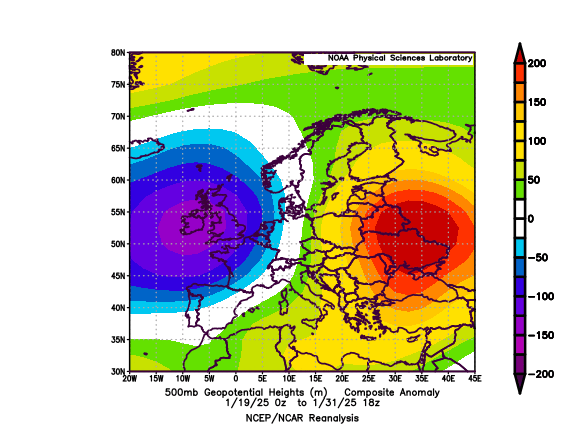 Il primo mese del 2025 ha segnato una svolta più autunnale, dopo un avvio d'inverno che, nonostante l'assenza di palesi eventi invernali, lasciava ben sperare. Lo sforamento della soglia NAM non perdona, e, sebbene la troposfera polare si sia riuscita a contrastare i tentativi di condizionamento, queto braccio di ferro produrrà un equilibrio che farà passare in sordina la fase statisticamente più dinamica dell'inverno. Nel pieno della prima decade, difatti, si raggiunge il primo di questo scontro: la confusione modellistica che regna fino alle porte dell'evento certifica la complessità della dinamica. NAO negativa, AO negativa, PNA in antifase e MJO in fase 8, la combinazione perfetta per far partire un anticiclone di blocco dalle Azzorre verso nord. Tuttavia, la tentata propagazione di calore verso i piani alti viene schermata per mezzo di una riflessione d'onda, risposta stratosferica testimoniata dal crollo di intensità della MJO, e così il promontorio anticiclonico devia verso la Groenlandia, lasciando spazio ad una retrogressione a nord delle Alpi che va ad agganciare il flusso antlantico. Restano favorevoli gli altri parametri troposferici, che accusano il colpo ma arginano una ricompattazione del VPT. Non si verifica quindi il temuto passaggio a NAO++, e sull'Italia non si erge l'anticiclone africano, bensì permane un tempo autunnale fino alla fine della prima decade. A riprova della preservata dinamicità, la depressione atlantica scivola verso levante, attraversando il Belpaese, e richiamando al suo seguito quel poco che rimane dell'aria fredda dai Balcani. La fase centrale del mese riesce così a portare a casa temperature invernali, in un contesto stabile. La MJO, però, si è riaccesa oramai in fase 1, continuando la sua corsa verso est fino alle fasi 3/4 entro la terza decade, fasi notoriamente sfavorevoli. A causa della recidiva instabilità della troposfera polare, non si struttura un anticiclone europeo, tuttavia i vortici ciclonici isolati muovono aria calda, e ciò si tramuta in noioso maltempo persistente.