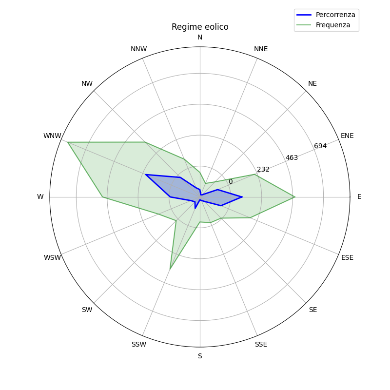 Uno sguardo sul regime eolico mette in evidenza un bilanciamento fra l'azione dei venti di ponente, tipici delle giornate serene ed anticicloniche, e quella degli sbuffi da est, ricorrenti durante le fasi perturbate. Anche le notturne brezze di monte si sono ritagliate ampio spazio, a dispetto delle frequenti coperture nuvolose.