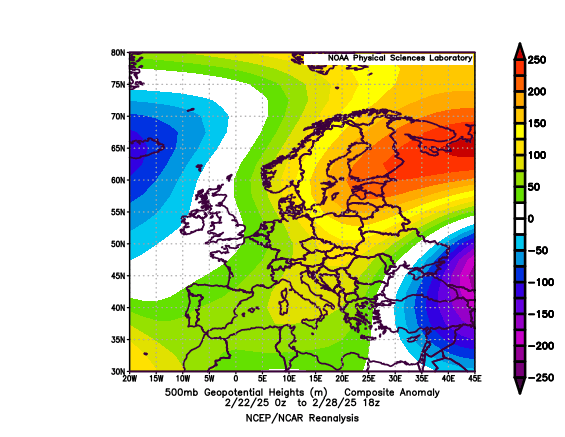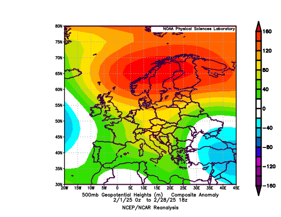 La prima settimana dell'ultimo mese d'inverno osserva condizioni di NAO++ e una MJO in fase 5-6, un pattern compatibile con un asse di saccatura ad est dell'Italia, ragion per cui si concretizzano condizioni termiche più fredde ma in un contesto di pressione elevata. La successiva caduta vertiginosa dell'AO, che raggiungerà valori di -5 al suolo a metà mese (-4 a 500 hPa), comporta un primo indebolimento della NAO a fine prima decade, con conseguente temporanea situazione di neutralità, associata ad una MJO nel frattempo traslata in fase 6, che induce la formazione di una saccatura lunga ma poco profonda ad ovest dell'Italia, con passaggio a condizioni di tempo blandamente perturbato e mite. Verso metà mese si concretizzano gli effetti della caduta dell'AO, e si imposta un promontorio anticiclonico di blocco, la cui iniziativa viene però, come detto poc'anzi, bloccata dal concomitante tentativo di condizionamento troposferico (da parte della stratosfera polare). Le due azioni si neutralizzano vicendevolmente, esattamente come avvenuto poco più di un mese prima. Niente freddo, ma nemmeno ese-cold, soltanto una breve sfreddata seguita da un inevitabile rinforzo della circolazione zonale e una caduta di intensità della MJO, che attraversa silenziosamente la fase 8. Il congedo dell'inverno avviene quindi con ampie vorticità sul medio Atlantico, promontorio sub-tropicale sull'Europa occidentale, circolazione secondaria isolata fra Turchia e Balcani. Tempo inizialmente stabile ma non troppo caldo sull'Italia, poi via via più incerto per la lenta traslazione di tutto questo pattern verso est, secondo quanto comandato dallo spostamento dell'MJO in fase 1 negli ultimissimi giorni del mese.