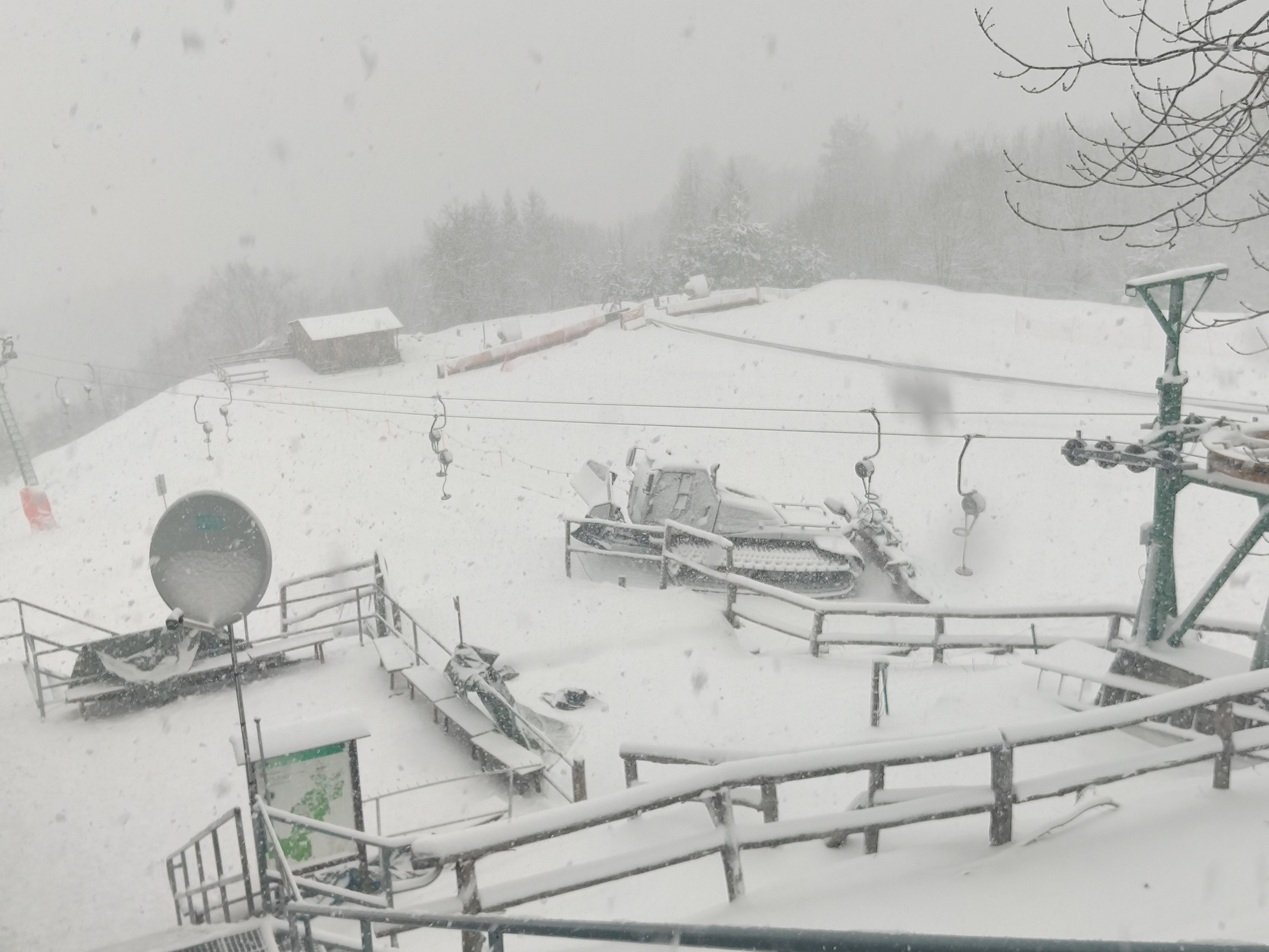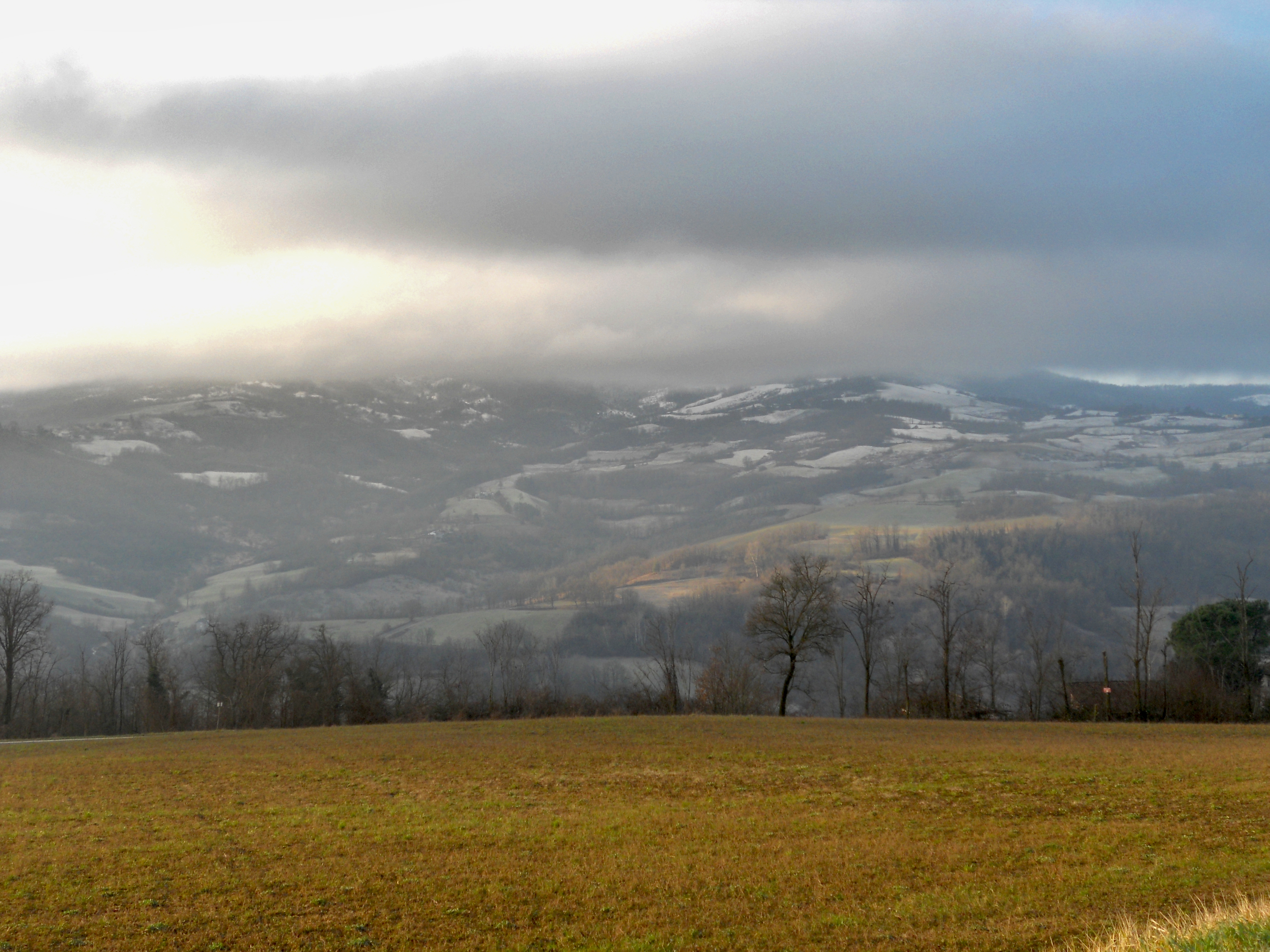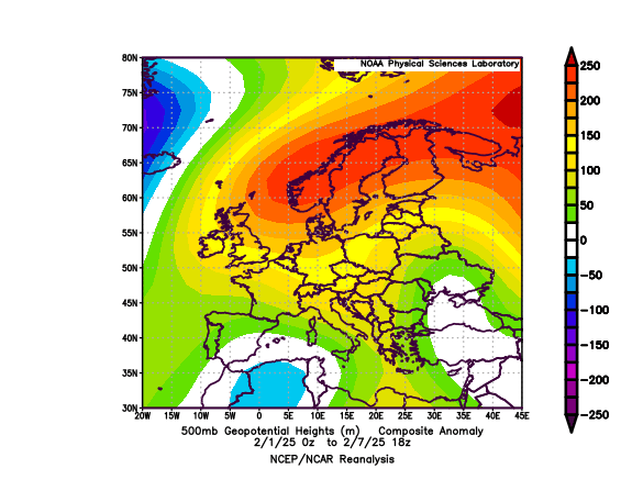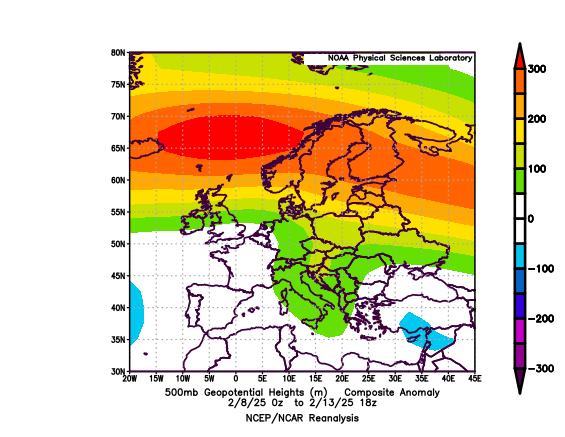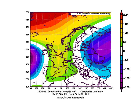 La situazione si sblocca bruscamente nel giorno di San Valentino, quando irrompe una massa d'aria finalmente degna dell'inverno, grazie all'innalzamento di un lungo promontorio anticiclonico dalla Spagna alla Groenlandia. Come in gennaio, il tentativo di portare il gelo sull'Europa mediterranea va in fumo, a causa dell'influenza nociva della stratosfera polare, con fenomeni di riflessione d'onda che impediscono la propagazione verticale dei flussi di calore e la conseguente rottura del VP. Si imposta comunque una dinamica interessante, con l'improvvisa irruzione, dopo una giornata inizialmente variabile e molto mite, di una massa d'aria fredda accompagnata da raffiche di vento a 53 km/h da est. Le nubi cumuliformi generate dal sollevamento della preesistente massa mite danno vita a rovesci di graupeln o neve tonda, che interessano brevemente anche la nostra città, grazie anche al repentino calo termico in coda ai fenomeni. Tagliato il promontorio anticiclonico, l'atmosfera riparte nel suo flusso zonale, ma l'aria fredda subentrata permane per diversi giorni, regalando un assaggio d'inverno conciliato dalla visione delle colline innevate. Curioso il fenomeno all'alba del 15: i rapidi rasserenamenti e il raffreddamento radiativo ghiacciano la pioggia caduta, creando una glassa di ghiaccio su tutte le superfici