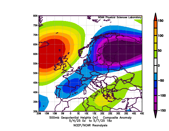 La situazione in corso non lasciava presagire nulla di buono, dal momento che, dopo la fase 8 della MJO, tipicamente fresca ma rivelatasi in questo caso rovente per la formazione della falla iberica e conseguente blocco a omega, occorrono le fasi "calde". Invece, con sorpresa anche dei modelli meteo, la MJO ha saltato queste fasi, ricomparendo verso la fine della prima decade in zona 5-6. La fase di inattività attraverso cui è dovuta passare ha determinato la formazione di gocce fredde, una delle quali si è presentata a ovest dell'Italia, determinando maltempo e crollo delle temperature al di sotto dei 20°C. Non si è trattato di un vero e proprio travaso di aria fredda, tuttavia, contrariamente a quanto accade nei mesi invernali, in maggio un grosso contributo alle temperature non è dato dalle masse in quota bensì dalla radiazione solare, dunque basta una rottura del tempo per passare da tepori tardo primaverili ad un freddo umido autunnale.