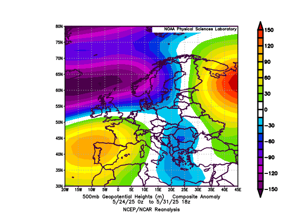 L'ultima settimana del mese di maggio gode di una ritrovata stabilità. Fatta eccezione per lo sporadico temporale del 27, il tempo si è oramai impostato sui binari dell'estate. Grazie ad una MJO in fase 4 e ad un'Oscillazione Artica forte, la fascia degli anticicloni subisce un sostanziale rialzo, e questo porta con sè anche i primi 30°C di stagione, registrati negli ultimi 3 giorni del mese, nonchè le prime notti tiepide.