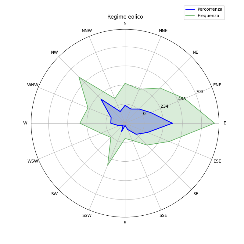 Il regime eolico non segnala una netta prevalenza di un tipo di circolazione, principalmente a causa del ferreo dominio anticiclonico che ha mortificato la dinamicità atmosferica. Questo ha lasciato spazio alle brezze locali che abbiamo imparato a conoscere, come quella notturna da SSW e quelle diurne che ruotano da NW a NNE nel corso della giornata. La raffica più intensa, registrata in occasione dle violento temporale del 15, è stata di 61 km/h.