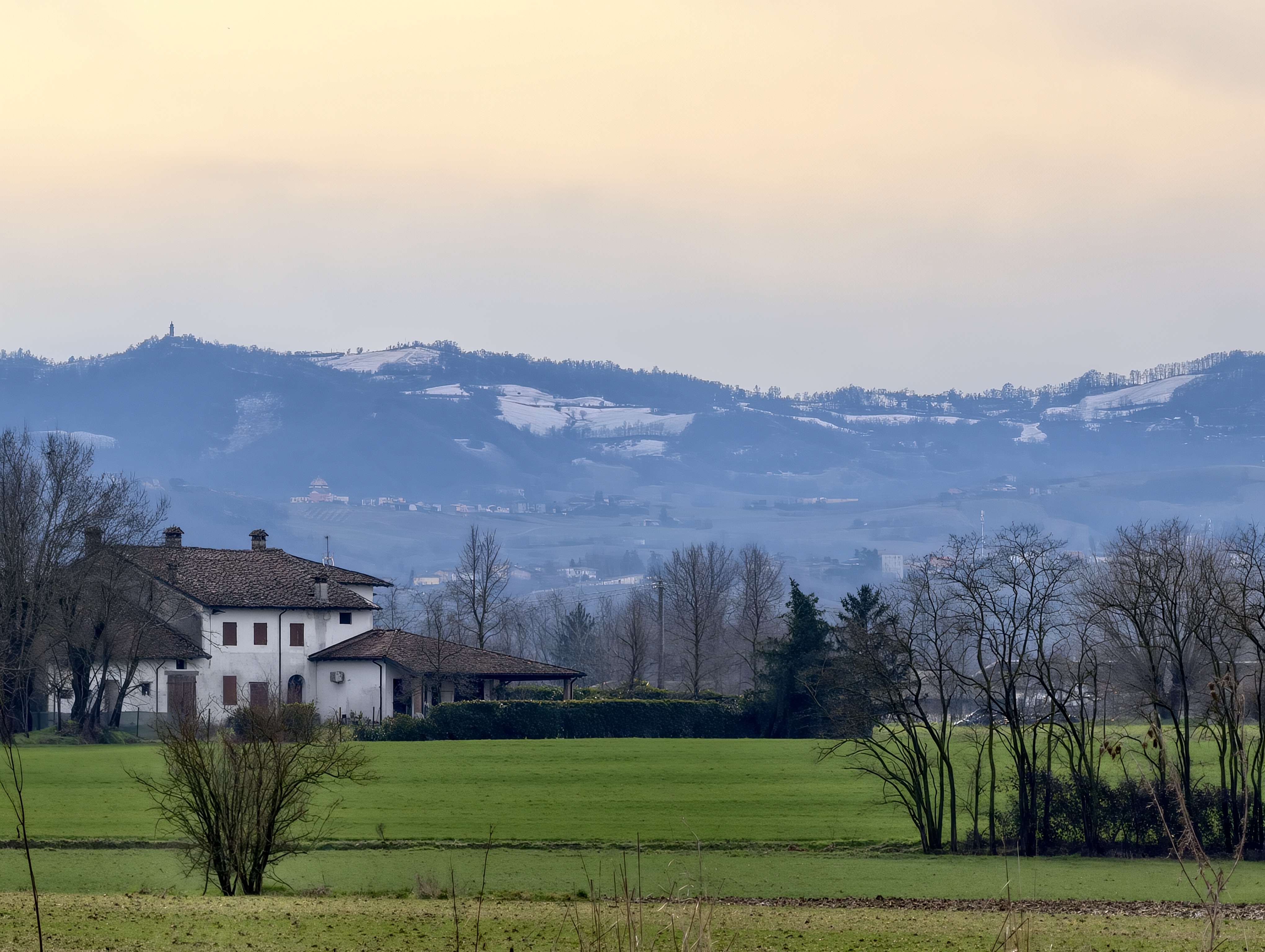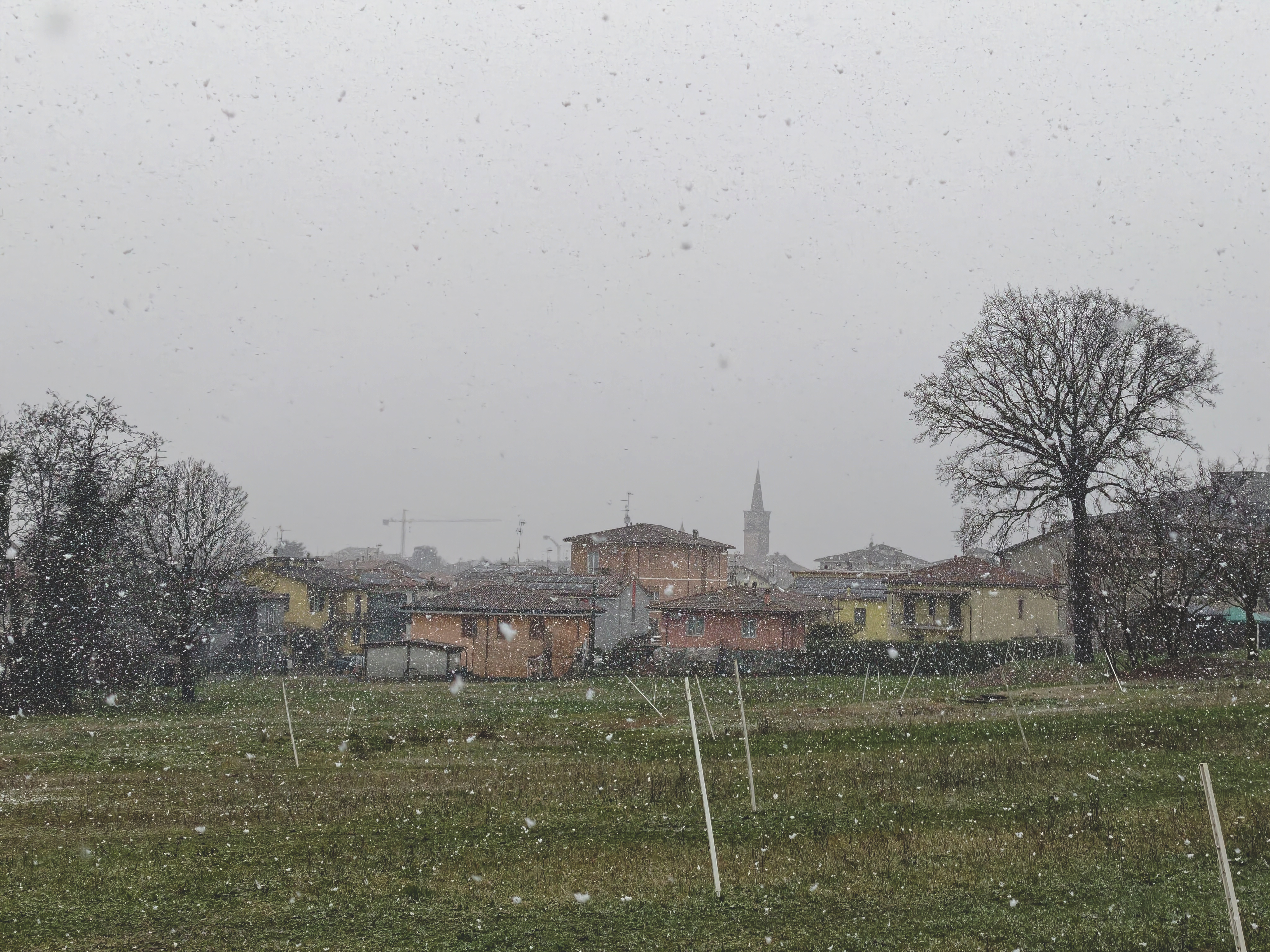 Al seguito della perturbazione di San Valentino riesce ad affluire timidamente un po' di aria fredda: udite udite, ritornano addirittura le gelate, uno strano fenomeno meteorologico di cui febbraio sembra essersi dimenticato, specialmente quest'anno. Ben -1,1°C all'alba del 18, cui segue una massima marzolina di +13,7°C in un contesto nemmeno completamente sereno a causa degli avamposti di una perturbazione che sembrerebbe piuttosto incisiva, al punto, dicono i modelli, da portare i fiocchi bianchi ad accarezzare le pianure subappenniniche di Oltrepò e Piacentino. Nella notte di giovedì 19 febbraio si attivano precipitazioni a carattere di rovescio, accompagnate da qualche colpo di tuono avvertito qua e là per il nord-ovest. La quota neve resta saldamente ancorata alle cime dell'Appennino, al di sopra dei 1000 metri, e, dopo una notte con temperature stabili sui 6°C a dispetto della pioggia battente, alle 8 sembra oramai sfumata l'ultima occasione di vedere almeno una volta la neve in pianura in questo ennesimo insulso inverno. Ma ecco che, non appena il vento ruota da ovest, la frontiera dei fiocchi crolla praticamente in caduta libera, e, nel giro di un'ora, passa da circa 800 metri a quote di pianura! In questo breve lasso di tempo, la stazione meteorologica registra un tracollo termico di quasi 5°C, ancora più veloce di quello che portò alla nevicata coreografica di Natale 2020, passando da +5,7°C delle 8.00 a +0,9°C alle 9.40. Grazie alla notevole intensità delle precipitazioni, a tratti superiore ai 5 mm/h, la nevicata risulta per alcuni istanti davvero bella, con larghe falde e addirittura un tentativo di attecchimento su prati e tetti. Alla fine, su tavola di legno, ho registrato 0,5 cm di neve. Un dato che sembra la caricatura ironica degli ultimi inverni, ma che rappresenta comunque la nevicata più significativa dall'ormai lontano 4 dicembre 2023 (quando cadde 1 cm), e che assume un valore ancora più ricercato se si considera l'immane sforzo meteorologico che è stato necessario per depositarlo. Ben 9 ore di precipitazioni costantemente forti, con picchi fino a 20 mm/h, per una notte intera hanno tentato invano di vincere l'azione rimescolante di 15-20 nodi di vento da est al suolo (e quasi 50 da SW a 850 hPa), e, sfruttando l'indebolimento e la rotazione di quest'ultimo al passaggio del fronte, hanno omotermizzato una colonna d'aria ovunque mite e inospitale tramite il calore latente sottratto dalla fusione di una miriade incalcolabile di fiocchi di neve, prima dell'inevitabile scemare dei fenomeni. L'esaurimento delle precipitazioni ha lasciato spazio a un veloce rialzo termico e addirittura a qualche schiarita verso mezzogiorno, con il manto bianco che batteva in ritirata dai colli a vista d'occhio. Nel pomeriggio la temperatura ha avuto comunque modo di raggiungere i +8,6°C di massima, un valore tipico della seconda metà di febbraio, ma l'unico inferiore a 10°C nelle ultime due decadi di questo ennesimo inverno mite. Il sigillo di stagione apposto il 28 febbraio è infatti un eloquente verdetto sul trimestre "freddo": +9,3°C di minima e +12,15°C di media valgono più di mille considerazioni e giri di parole.